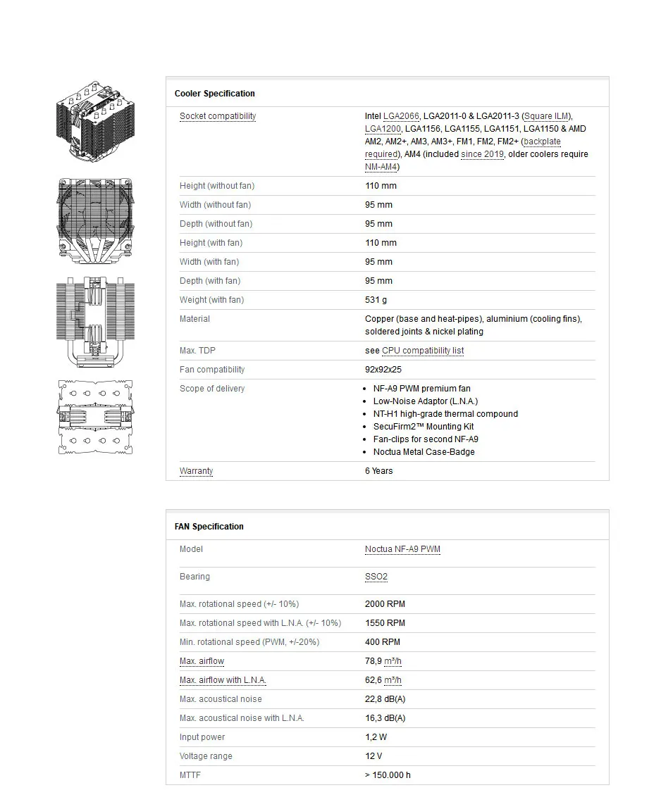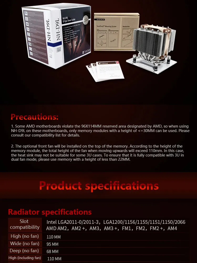 Comprar Noctua-enfriador de CPU NH-D9L, 4 tubos de calor 115X/AMD/enfriador de doble Torre/Memoria de Peine de compatibilidad/altura 11CM, Radiato de caja
