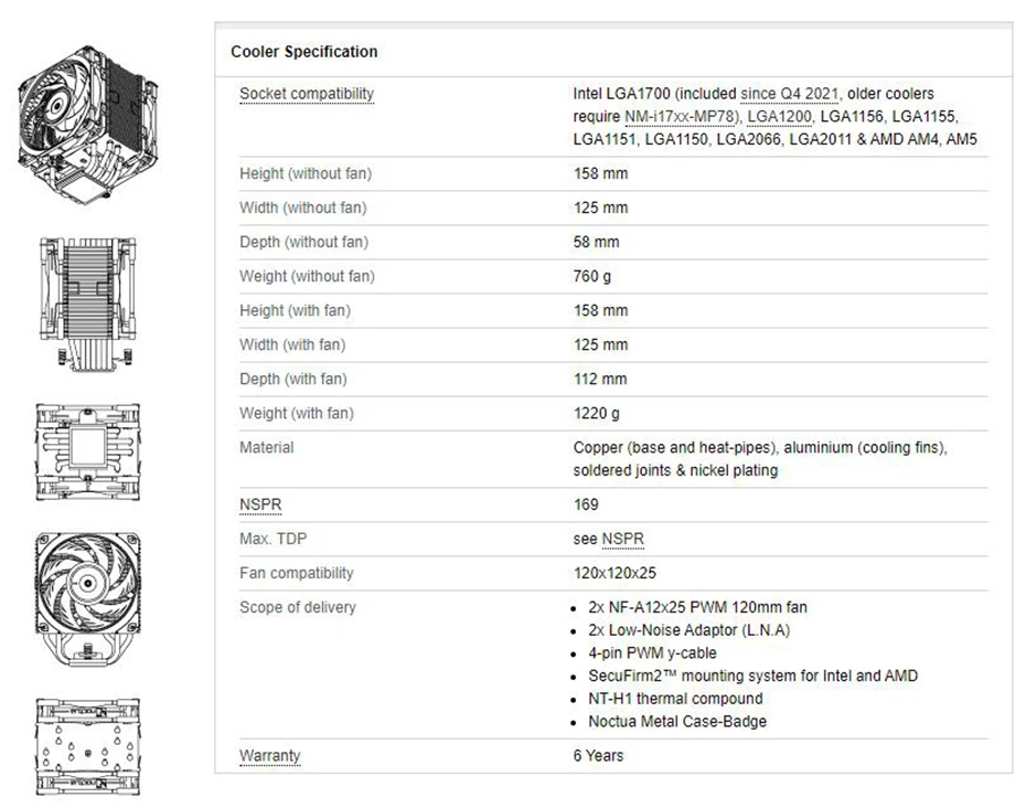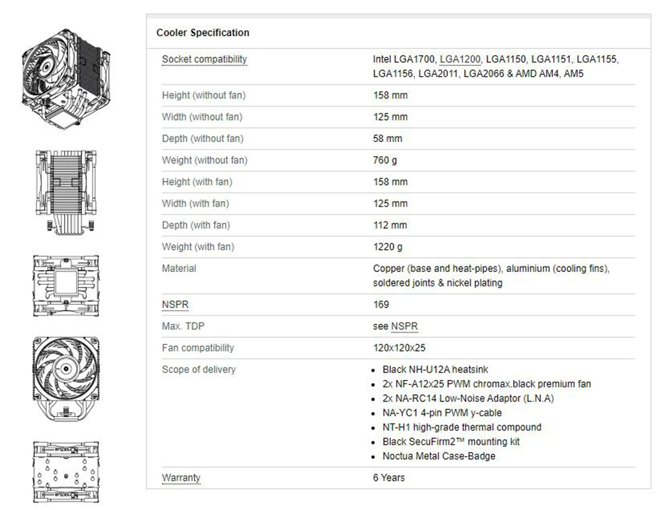 Comprar Noctua-enfriador de CPU NH-U12A chromax, Torre Negra, 7 tubos de calor duales de 120mm, PWM, ventilador de silencio, radiador para LGA115X 1700 1200 2011 AM4 AM5