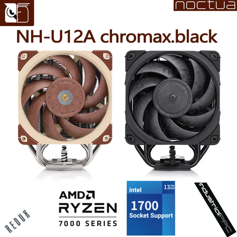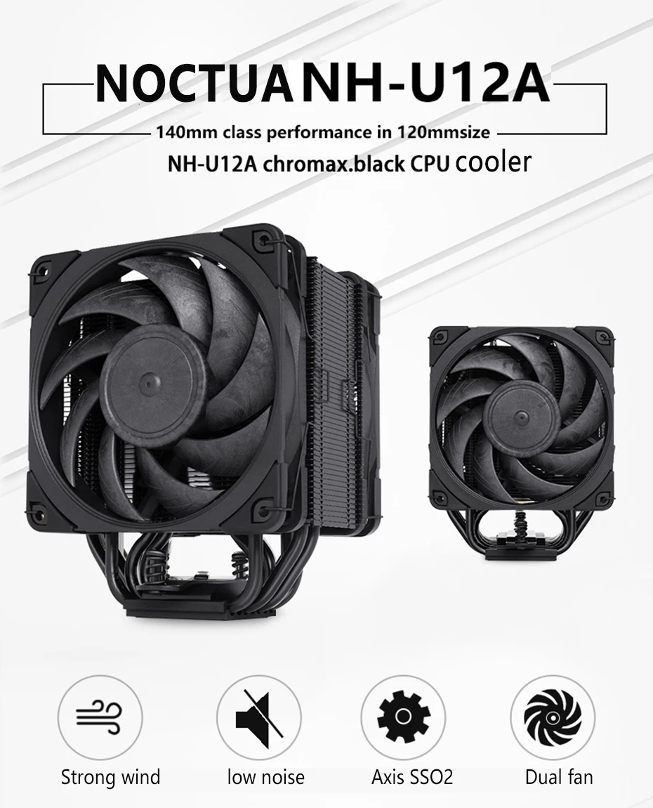 Noctua-enfriador de CPU NH-U12A chromax, Torre Negra, 7 tubos de calor duales de 120mm, PWM, ventilador de silencio, radiador para LGA115X 1700 1200 2011 AM4 AM5