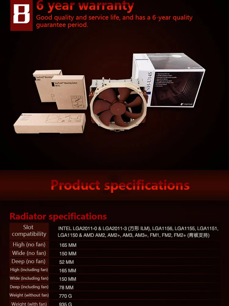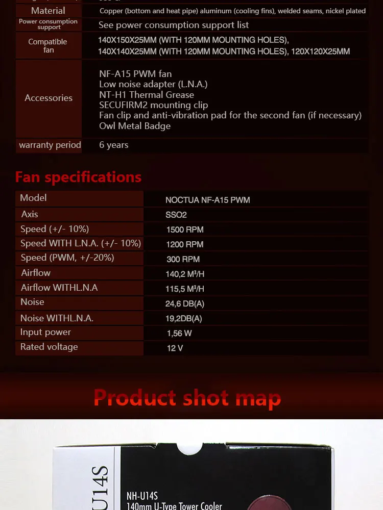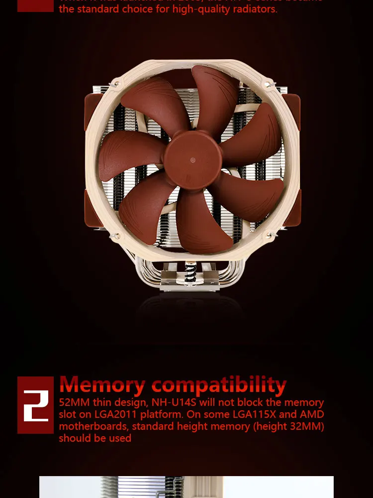Comprar Noctua-enfriador de CPU de NH-U14S, 55mm, diseño ultrafino, compatible con 115X/2011/AMD/A15PWM, ventilador de Control de temperatura/Memoria de Peine de compatibilidad
