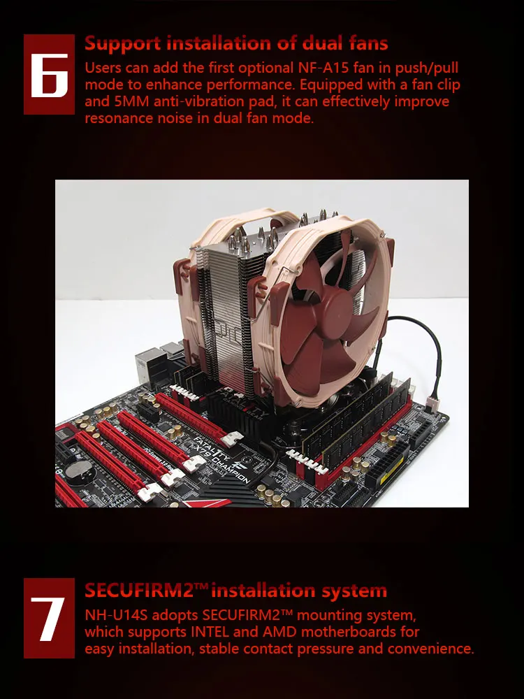 Noctua-enfriador de CPU de NH-U14S, 55mm, diseño ultrafino, compatible con 115X/2011/AMD/A15PWM, ventilador de Control de temperatura/Memoria de Peine de compatibilidad