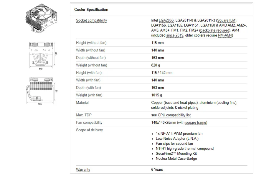 Sucesor del galardonado equipo de trabajo de la empresa de tecnología de procesamiento de alta calidad, el dispositivo de refrigeración de CPU de alta calidad, es extremadamente eficiente, altamente compatible y muy ajustable. Gracias a su pila de aletas más profunda y al renombrado ventilador PWM, el ventilador único proporciona un rendimiento de refrigeración silencioso similar a su predecesor de doble ventilador, a la vez que es aún más versátil: con el ventilador instalado en la parte superior de las aletas, el enfriador es compatible con módulos de RAM de hasta 70mm de altura. Con el ventilador instalado debajo de las aletas, la altura total del enfriador es de solo 115mm, lo que lo hace adecuado para su uso en muchas carcasas HTPC. Al mismo tiempo, el nuevo diseño de desplazamiento le permite borrar la ranura PCIe superior en la mayoría de las placas base ATX y ATX. Rematado con SecuFirm2 de confianza y de grado profesional™Sistema de montaje multienchufe, el compuesto térmico de Noctua de probada eficacia y los 6 años de garantía del fabricante. El sistema es una solución de calidad superior para las más altas exigencias.