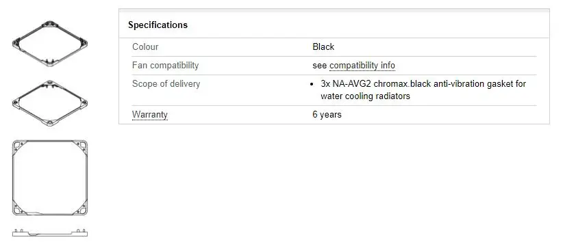 Containing 3 NA-AVG1 gaskets, the NA-SAVG1 set enables customers to equip up to three compatible 120x25mm fans. Perfect for getting the most out of water cooling setups with 240 or 360mm radiators.