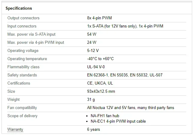 Comprar Noctua-Hub DE VENTILADOR DE 8 canales, dispositivo fijo magnético, fusible de reinicio automático, 12V/5V, 4 pines, PWM o 3 pines, NA-FH1