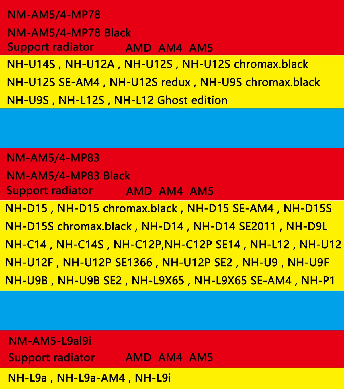 The NM-AM5/4-MP83 kit is compatible with a wide range of Noctua CPU coolers that use 83mm mounting pitch, whereas heatsinks with 78mm mounting pitch must use the MP78 version. Please refer to our detailed compatibility information to check which kit is right for your cooler.