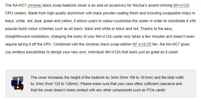 ¿Quieres darle a todo tu disipador un color personalizado para dar las cosas un paso más allá?Si bien los disipadores térmicos con pintura en aerosol son difíciles y reducen el rendimiento, las cubiertas chromax con recubrimiento en polvo de Noctua se pueden volver a pintar fácilmente con colores y decoraciones personalizados.