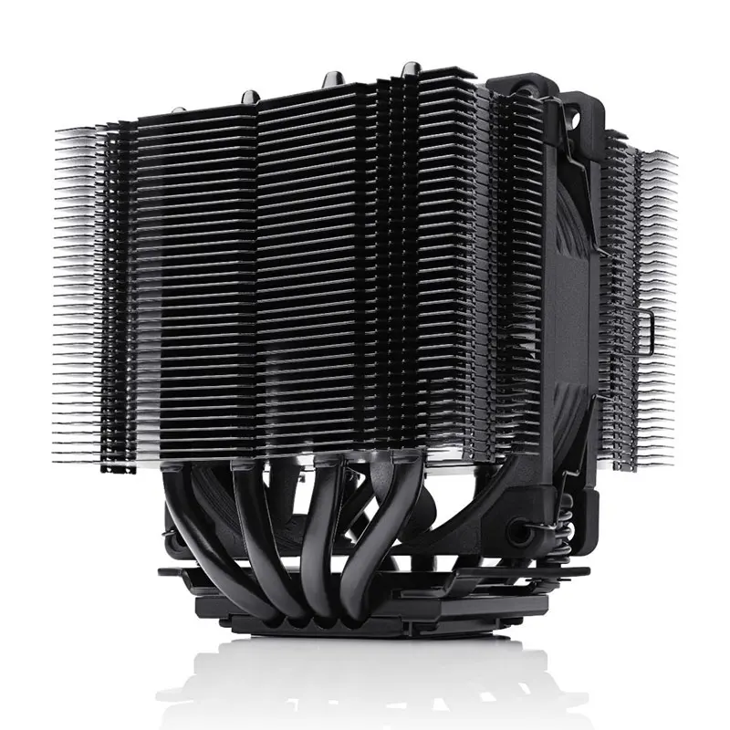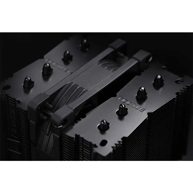 El NH-D9L chromax.black es una versión completamente negra del galardonado enfriador de CPU compacto de doble torre NH-D9L de Noctua que ha sido diseñado para proporcionar un excelente rendimiento de enfriamiento silencioso a una altura de solo 110 mm.Su perfil comparativamente bajo (15 mm más bajo que los refrigeradores de torre clásicos de 9 cm, como el NH-U9S), no solo garantiza el cumplimiento total de la 3U, sino que también hace que el NH-D9L sea ideal para cajas compactas de HTPC y Factor de forma pequeña que tienen rutas de flujo de aire paralelas al placa base.Gracias a su espacio de 95x95 mm, la NH-D9L borra las ranuras RAM y PCIe en todas las placas base ITX basadas en Intel y en la mayoría de las tarjetas SIMPAS.El ventilador premium NF-A9 incluido admite control automático de velocidad a través de PWM para una excelente tranquilidad de funcionamiento y se puede agregar un segundo ventilador NF-A9 opcional para mejorar aún más el rendimiento en modo de ventilador dual.Recubierto con el confiable SecuFirm2 de calidad profesional™ Sistema de montaje de múltiples enchufes, el comprobado compuesto térmico NT-H1 de Noctua y una garantía completa del fabricante de 6 años, el NH-D9L forma un paquete premium altamente compacto para aplicaciones con espacio limitado.