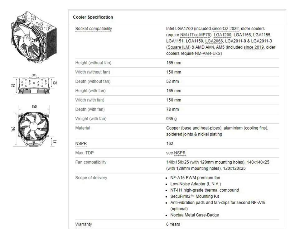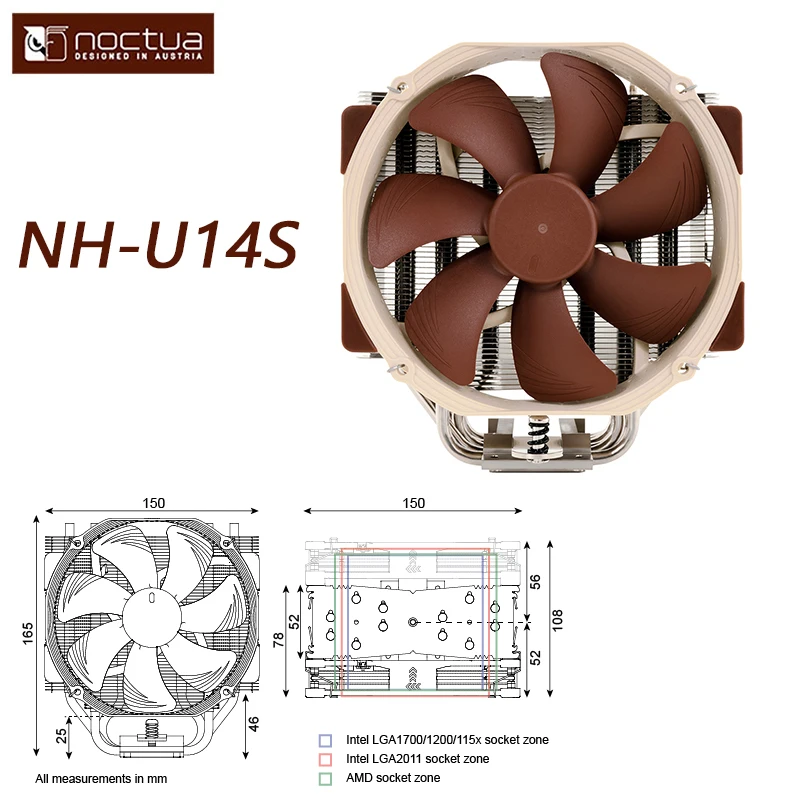 Comprar Noctua NH-U14S 6 heatpipes CPU Cooler 140mm con NF-A15 PWM ventilador silencioso PC radiador refrigeración para Intel LGA1700 115X 2066 2011 AM4