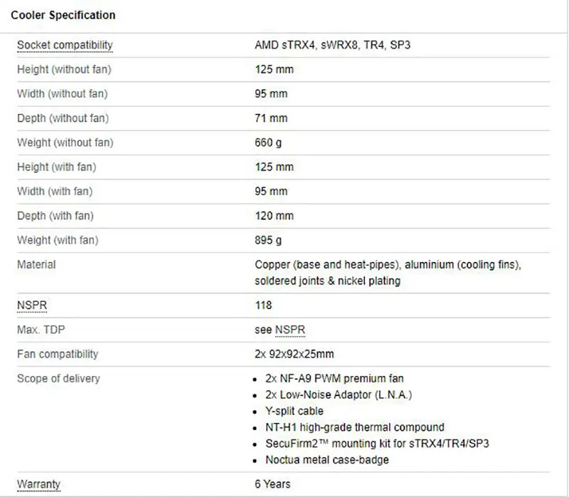 El TR4-SP3 DE LA NH-U9 está equipado con dos de los galardonados ventiladores de Noctua de 92mm, PWM, de la marca Noctua. Esta Configuración de doble ventilador push/pull le permite lograr un nivel de rendimiento de enfriamiento silencioso que es notable para un enfriador tan compacto y se acerca a los más grandes de los que se encuentran en los más grandes.