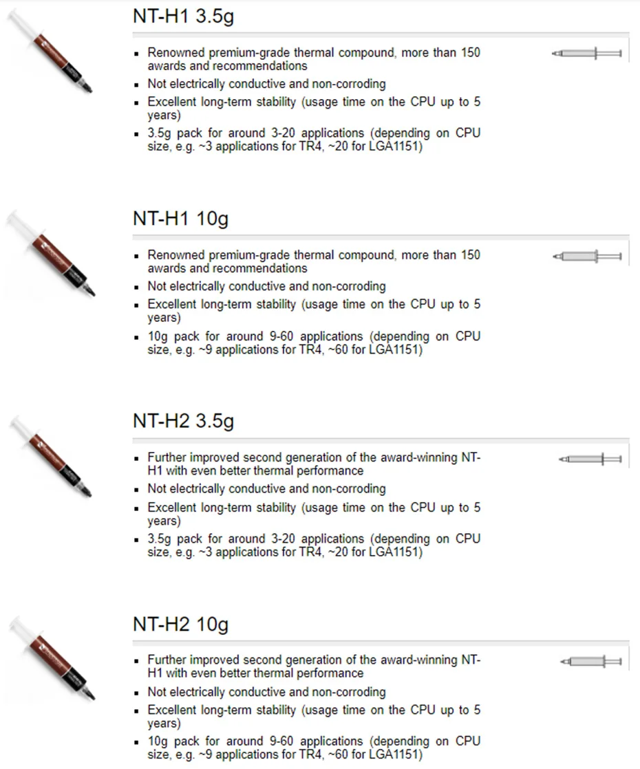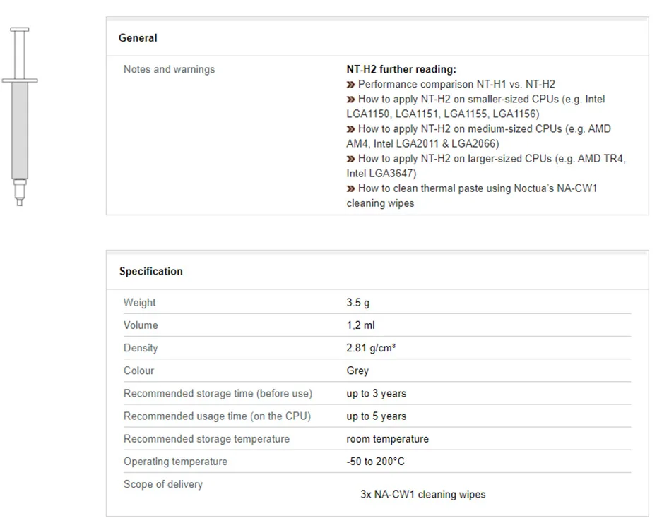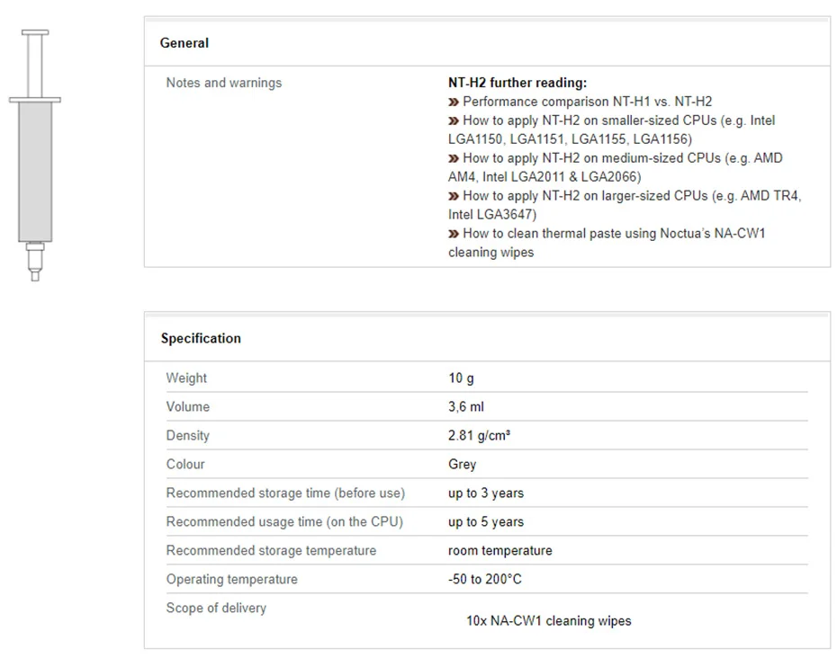Comprar Noctua NT-H1 NT-H2 3,5g 10g pasta de grasa térmica compuesto de silicona para enfriador de CPU disipador térmico procesador de PC refrigeración GPU
