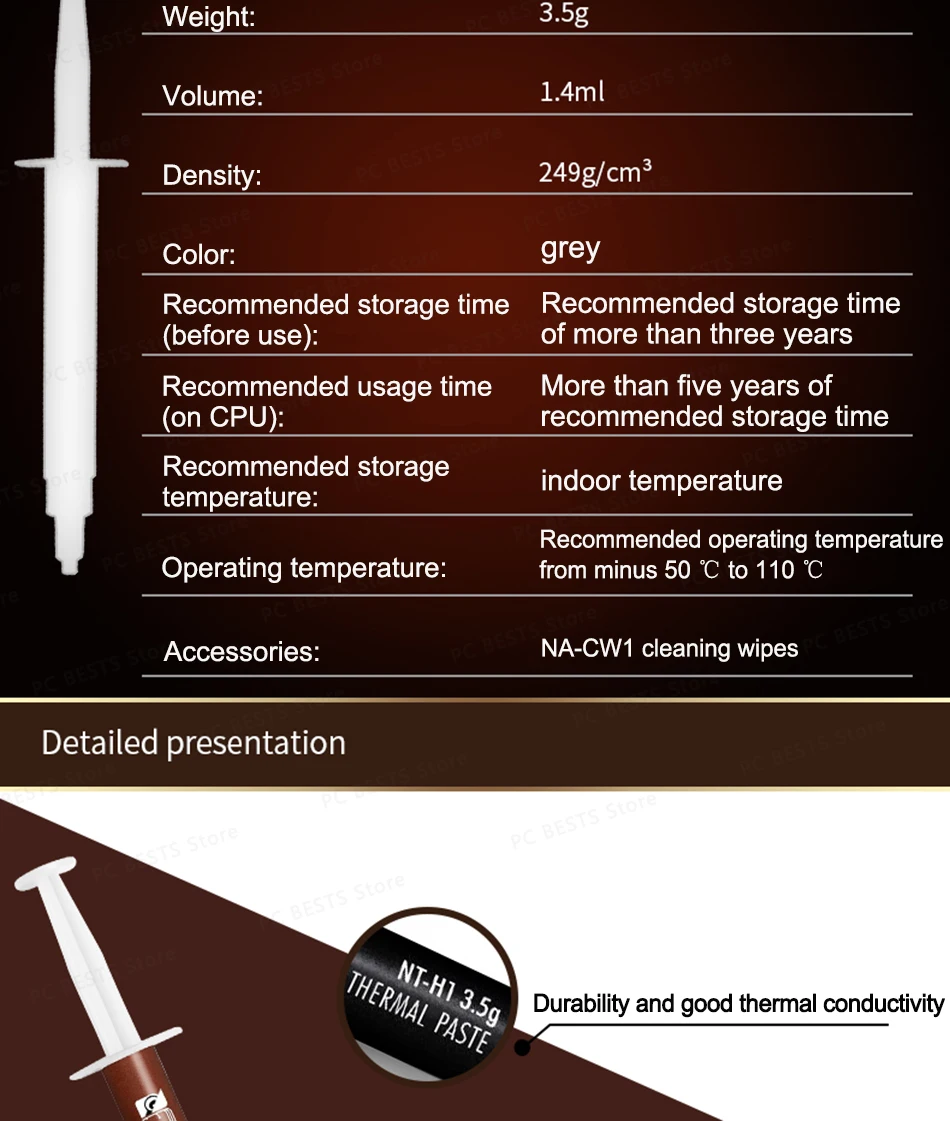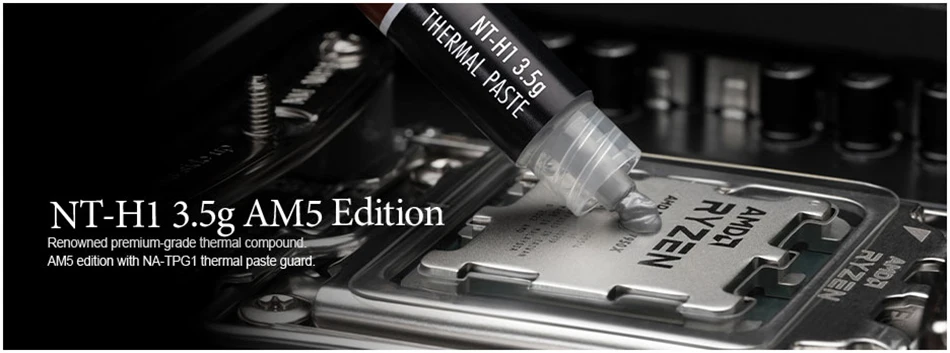 Noctua’s NT-H1 is a renowned hybrid thermal compound that has received more than 150 awards and recommendations from international hardware websites and magazines. Thanks to its excellent performance, exceptional ease of use and outstanding long-term stability, it has become an established favourite among overclockers and enthusiast users worldwide. Whether it’s air- or water-based cooling, CPU or GPU applications, overclocking or silent systems: NT-H1 is a proven premium paste that’s guaranteed to deliver great results. The AM5 edition includes the NA-TPG1 thermal paste guard that prevents thermal paste build-up in the cut-outs of the heatspreader of AMD AM5 CPUs – a simple yet highly effective means to keep your AM5 processor clean.