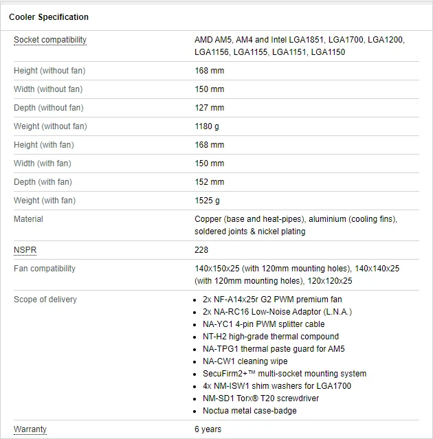 Gracias a la mayor densidad de aletas posible gracias a los nuevos ventiladores G2 de la serie, así como a las pilas asimétricas y un espacio ligeramente más pequeño entre las pilas, la versión G2 combina un rendimiento mejorado con un tamaño ligeramente más pequeño en comparación con la versión original de la NH-D15 (menos de 9mm Profundidad del disipador de calor, mismo ancho del disipador de calor, misma altura total incluyendo ventiladores).