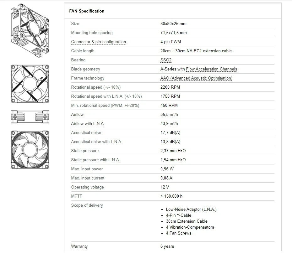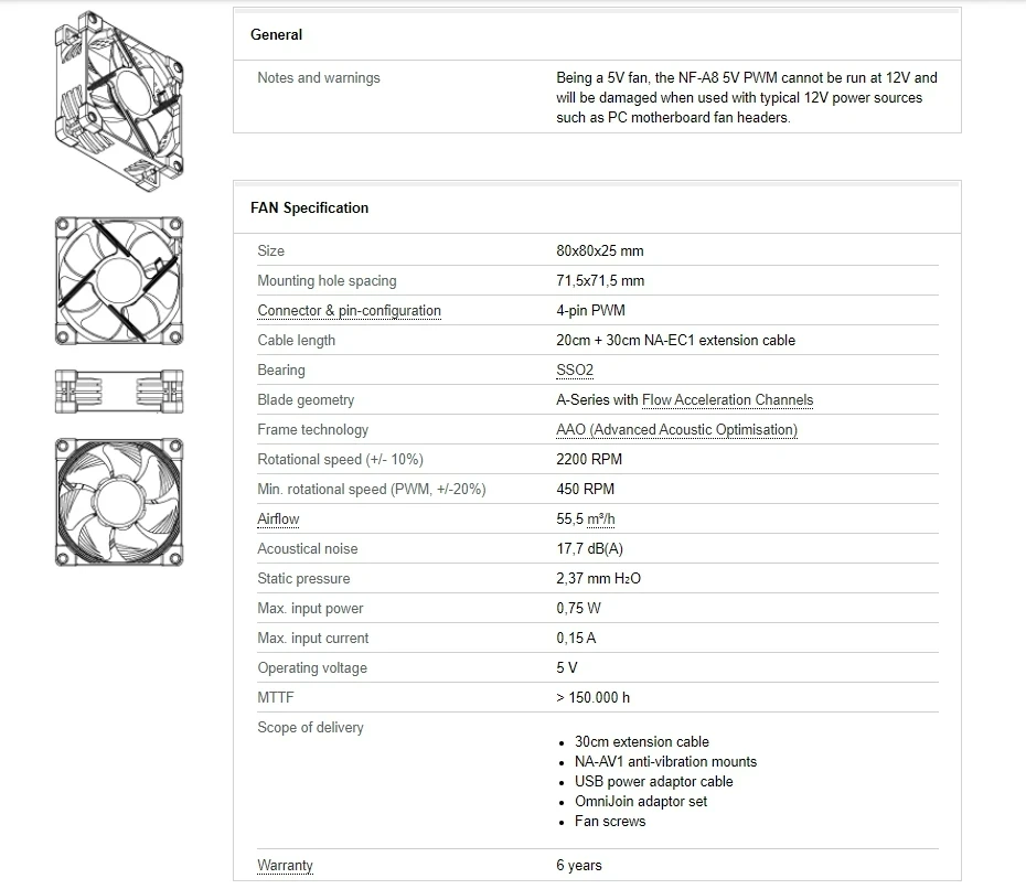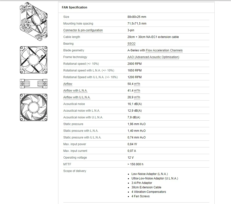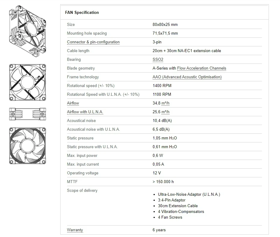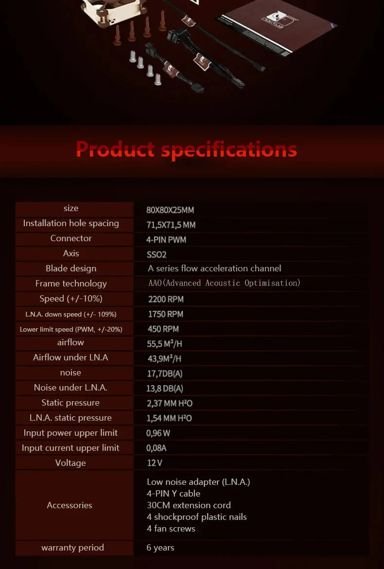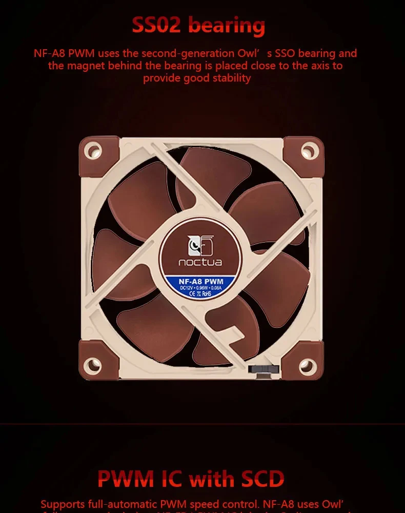 Noctua-ventilador de alta calidad con Control inteligente de temperatura, ventilador silencioso de CPU, alta presión de aire, 3/4 pines, 80mm, PMW, NF-A8, 8CM