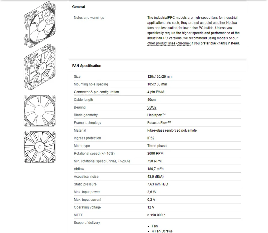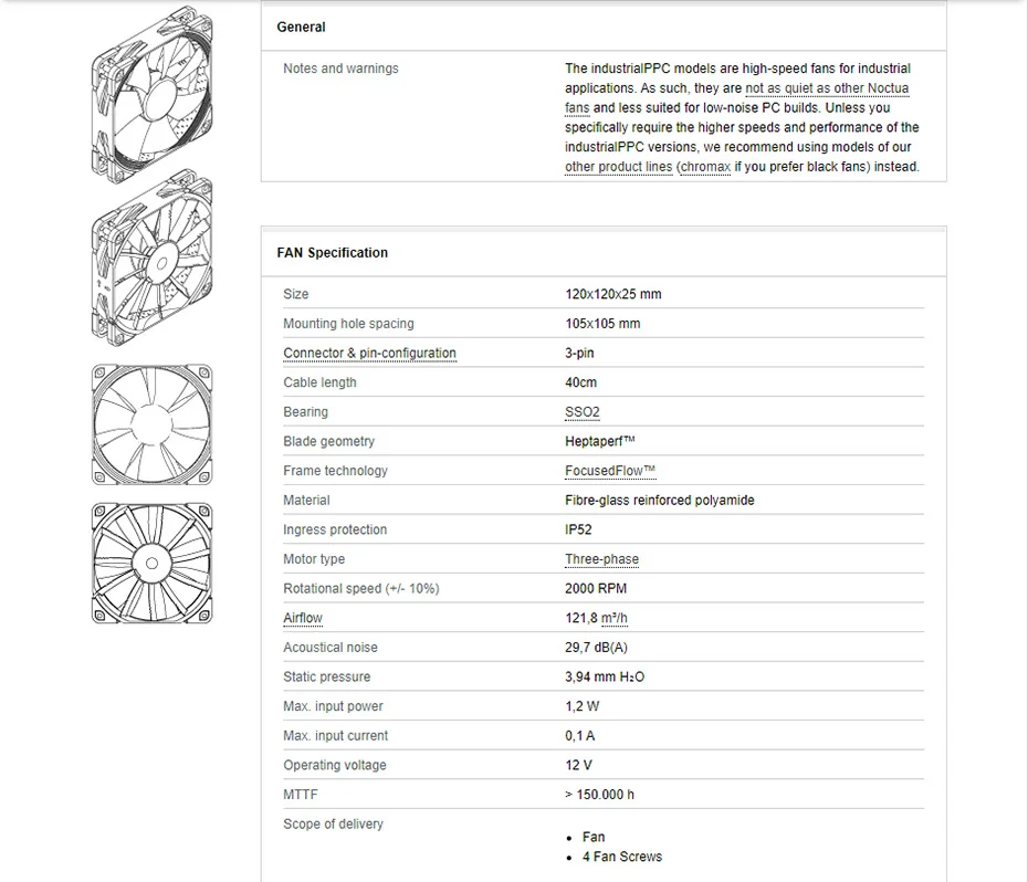 Comprar Noctua-ventilador de caja de ordenador NF-F12, silencioso, PWM, 120mm, 12V/24V, 2000/3000RPM, 12cm