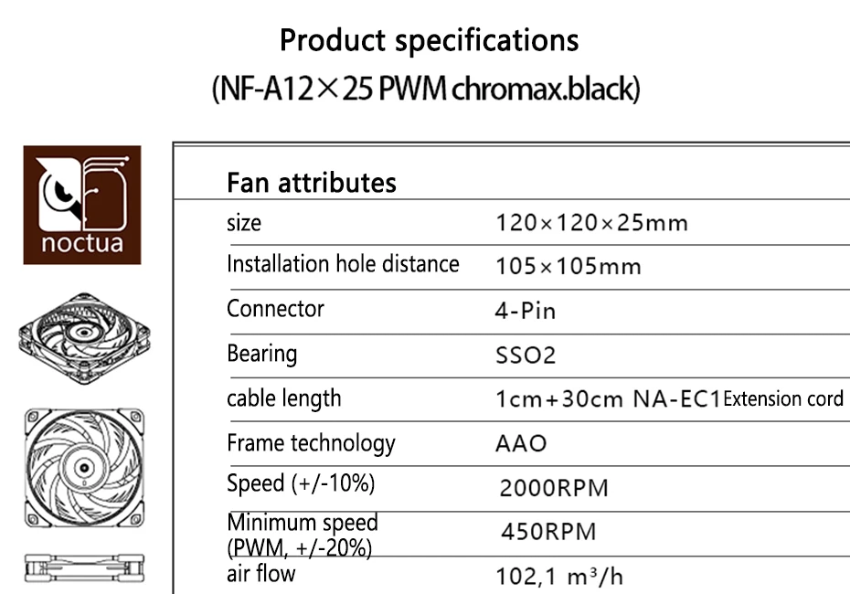 Comprar Noctua-ventilador NF-A12x25 PWM Chromax, Enfriador de CPU de 120mm, Control inteligente de temperatura, refrigeración por agua de la carcasa del ordenador, color negro