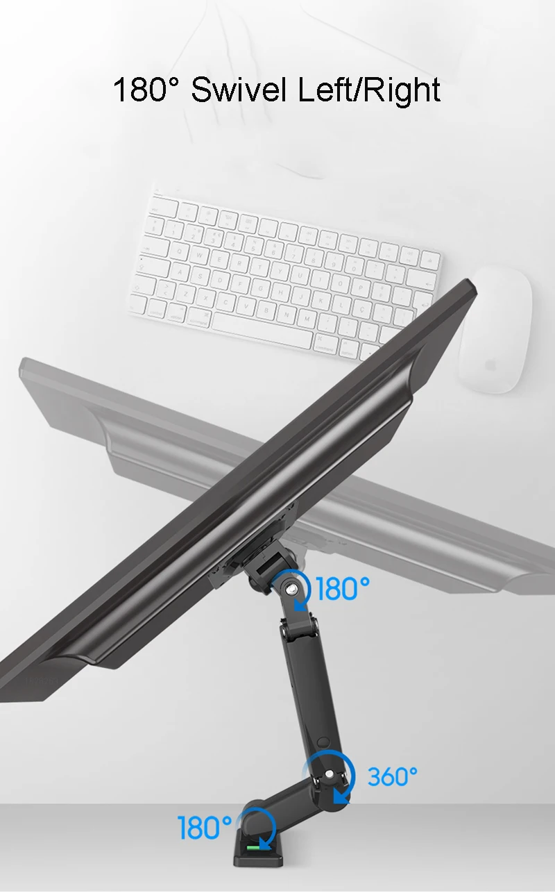 Experiencia de visualización y juego. Construido con puntal de gas duradero para permitir mover el monitor en cualquier dirección y altura a su gusto. Con junta de pivote de resorte adicional diseñada para ofrecer una posición de inclinación sin esfuerzo. Además, la pantalla ofrece una rotación de 360 ° para diferentes usos. Con Su diseño flexible, los brazos retráctiles y extensibles ahorran espacio en un área limitada.