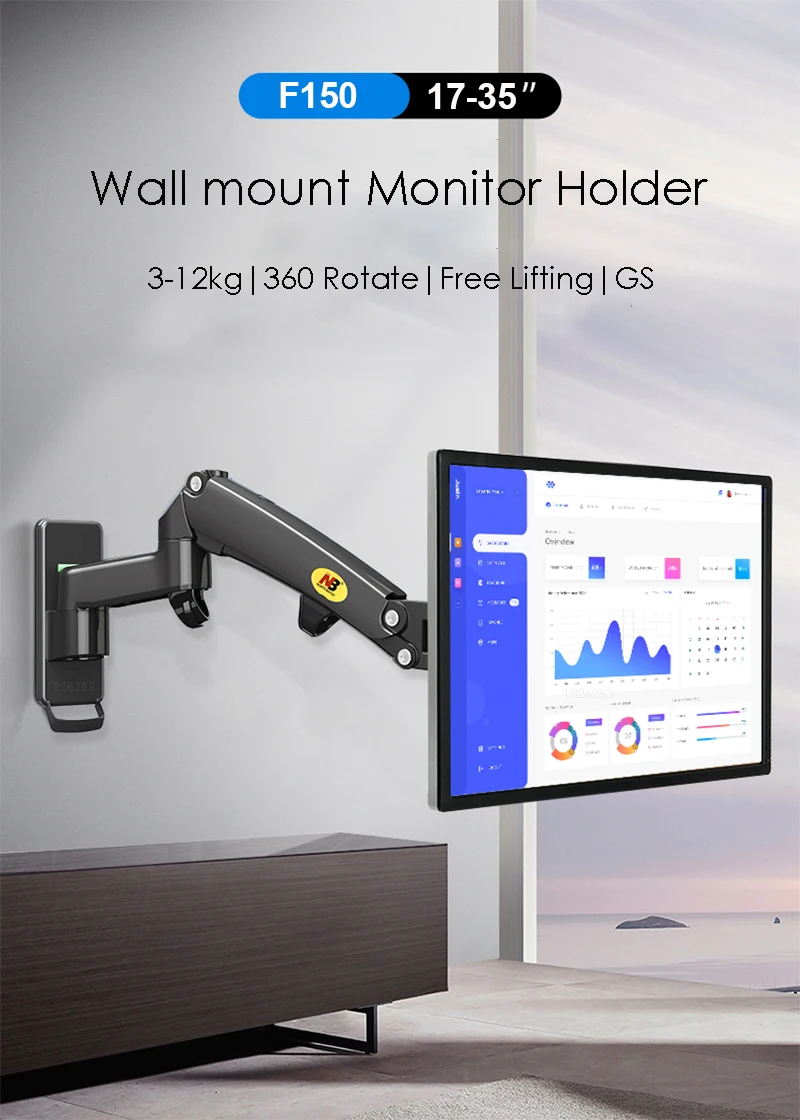 North Bayou NB F150 Resorte de gas 24-35 pulgadas LED TV Soporte de monitor de montaje en pared Brazo de montaje ergonómico Max. VESA 100*100mm Carga 3-12kgs