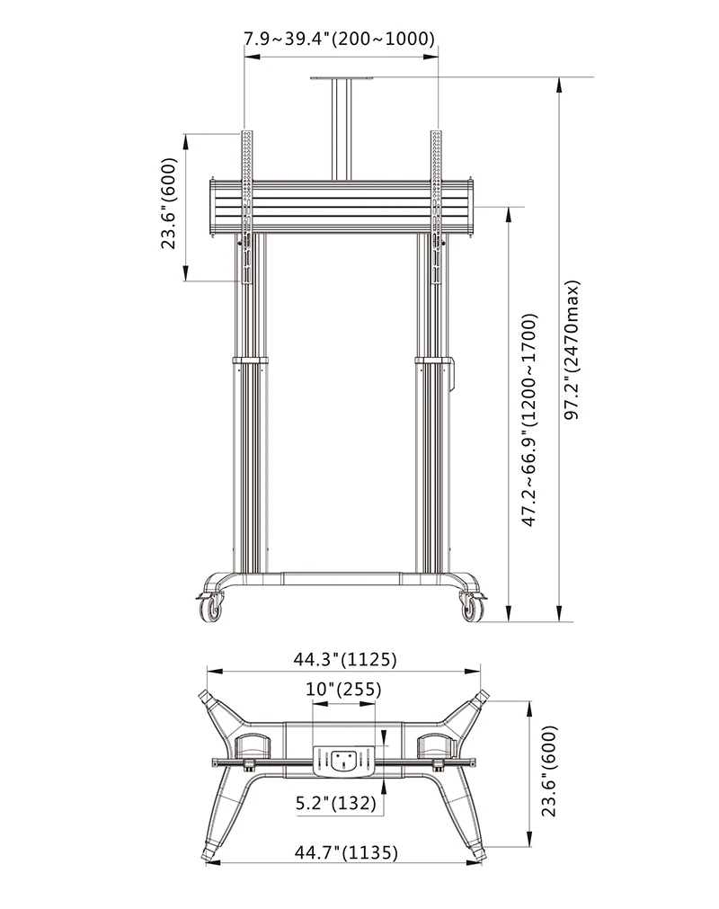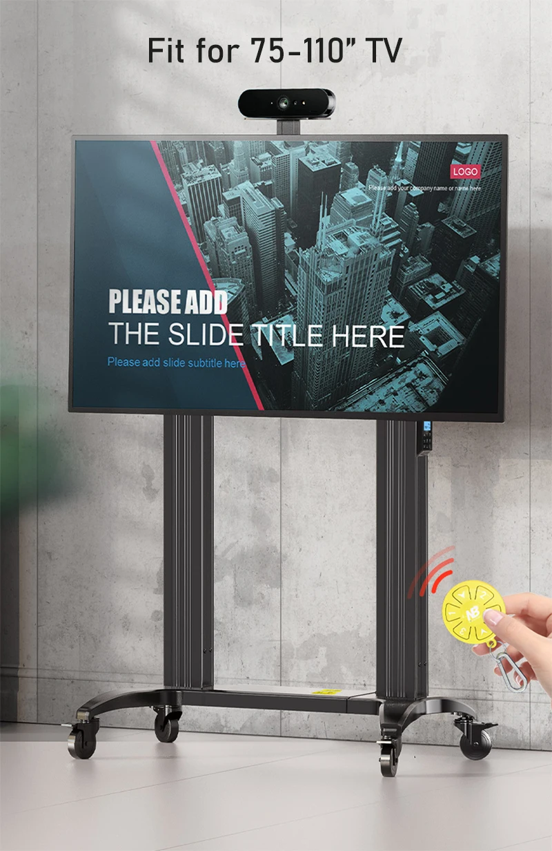 Se ajusta a la mayoría de los LED de Panel plano de 75 "-110", TV LCD.Este carrito de exhibición motorizado TW100, único y bonito, está diseñado para proporcionar soluciones de pantalla grande movibles para facilitar su movilidad de entretenimiento, conferencias, reuniones, conferencias y exposiciones. Se adapta a la mayoría de los televisores LCD o LED de pantalla plana de 75 "-110". TW100 es una innovadora pantalla móvil diseñada incluye una base de acero sólido de alta resistencia y una columna de aleación de aluminio anodizado de doble resistencia para soportar una carga total de 300 libras (134 kg). Con ruedas de freno resistentes instaladas de 4 ", no tiene problemas para manipular esta pieza de equipo a cualquier esquina de sus lugares de trabajo o sitios.Además, con un sistema de cilindro motorizado de alto par de CA de 110 o 240 adicional integrado con un actuador lineal de CC de 24 voltajes, dada la carrera de 500mm, la distancia de viaje le permite levantar la pantalla hasta 1,8 metros de alto sin ningún tipo de acople, tan fácil como puede hacer un niño.TW100 es un bloque modular diseñado para acortar el tiempo de montaje y desmontaje y reducir los problemas durante los procesos.El carro motorizado de pantalla elevadora TW100 ahorra mucho espacio y movilidad. Viene en color negro o blanco.* Carro móvil resistente motorizado con pantalla de elevación* Adaptador AV Auto swap 110 o 240* Actuador lineal de alto torque 24 voltajes DC con desplazamiento de 500mm.* Carga máxima 300 libras (136,4 kg). Se adapta a la mayoría de televisores o tableros inteligentes de 60 a 100 pulgadas* Ruedas de freno giratorias de 4 "de alta resistencia para una operación sin esfuerzo.* Cumplimiento VESA 200x200 a 1000x600. Se ajusta a pantallas más grandes en el maket actual* Instalador y respetuoso con el medio ambiente.* Gran movilidad y ahorro de espacio.