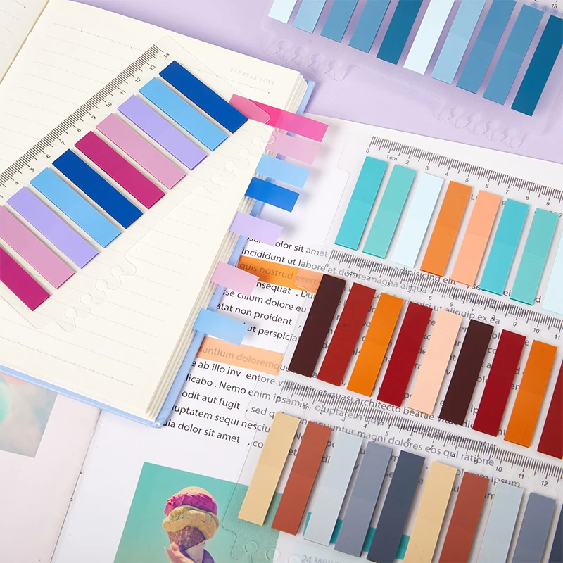 Diseño reflexivo: estos marcadores de página de colores con diseño semitransparente, que no ocultarán ninguna información que haya marcado; Adhesivo a media Raya, fácil de quitar y volver a colocar la etiqueta del documento, no deja ningún residuo pegajoso después de la eliminación, le brinda una buena experiencia de uso.