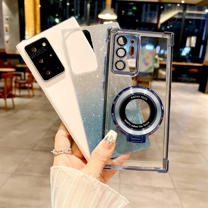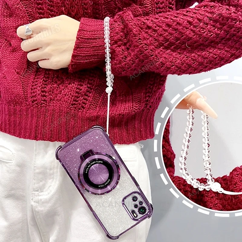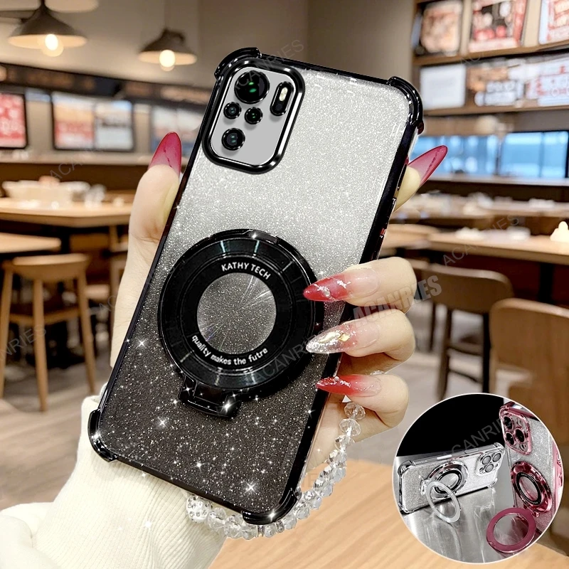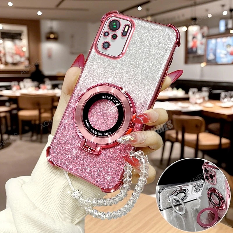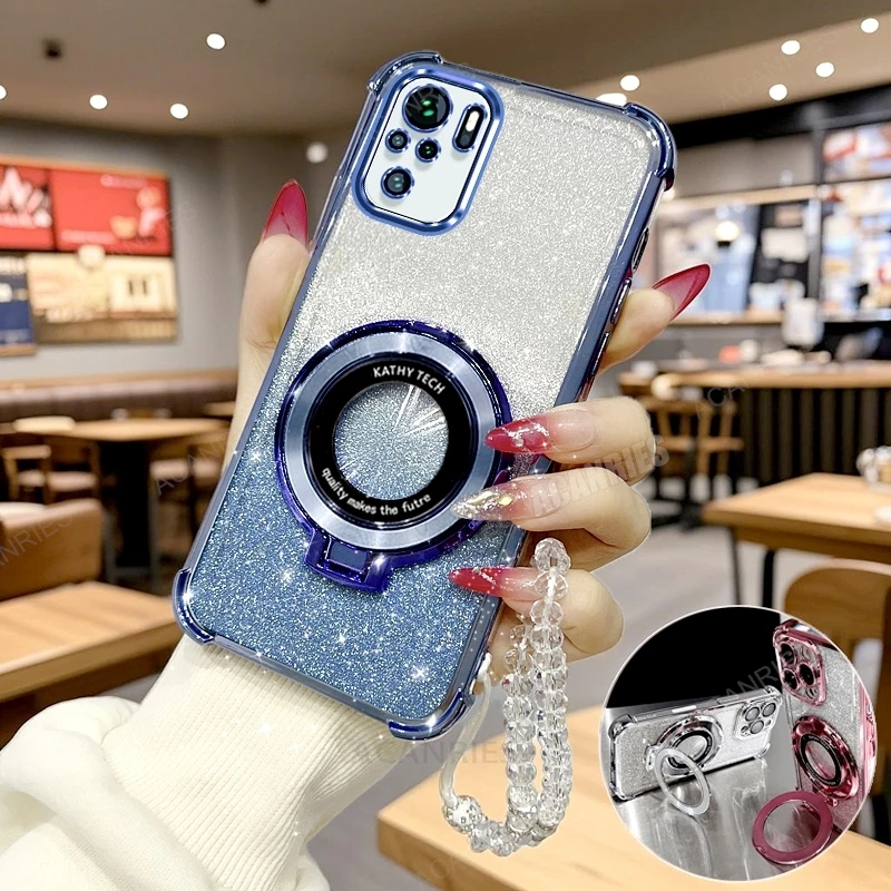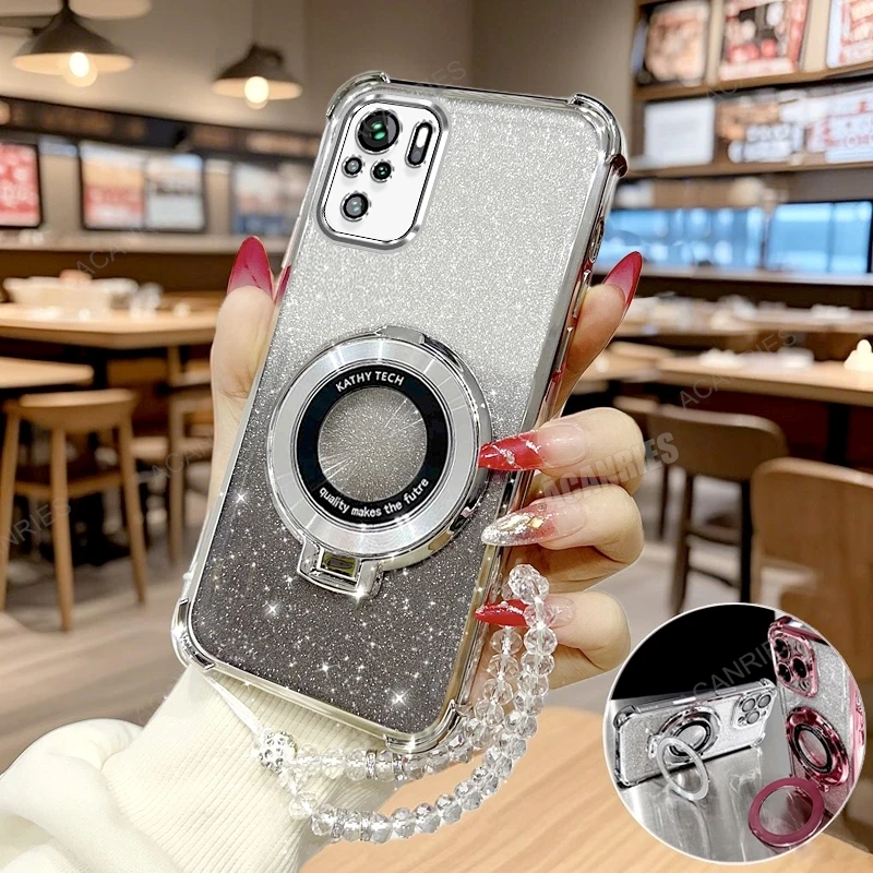 Note10s cadena transparente soporte de anillo de lujo funda de silicona chapada para Xiaomi Redmi Note 10 Pro 10s Note10 cubierta a prueba de golpes Note10pro
