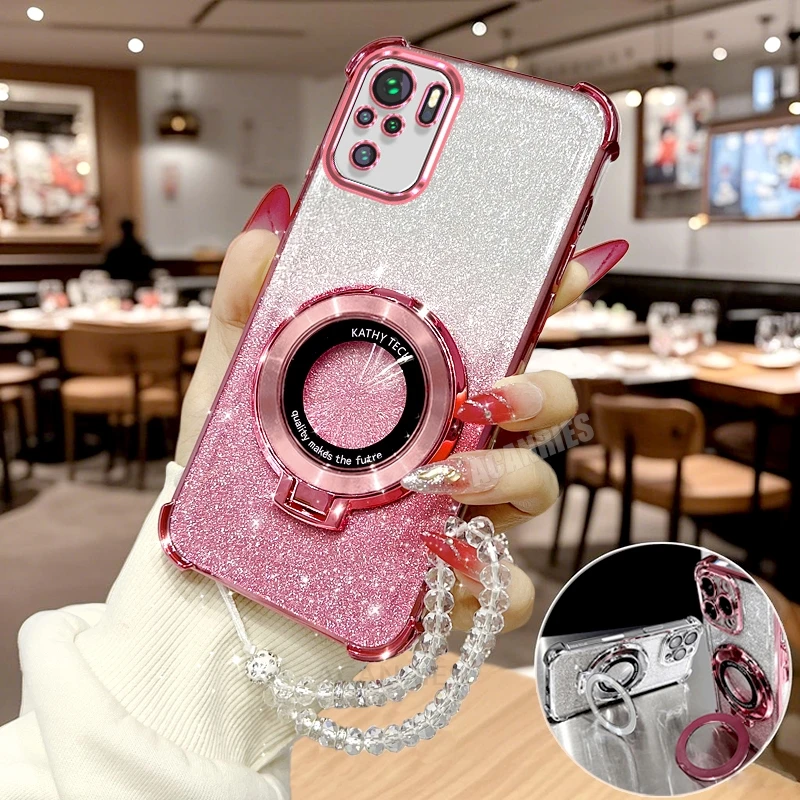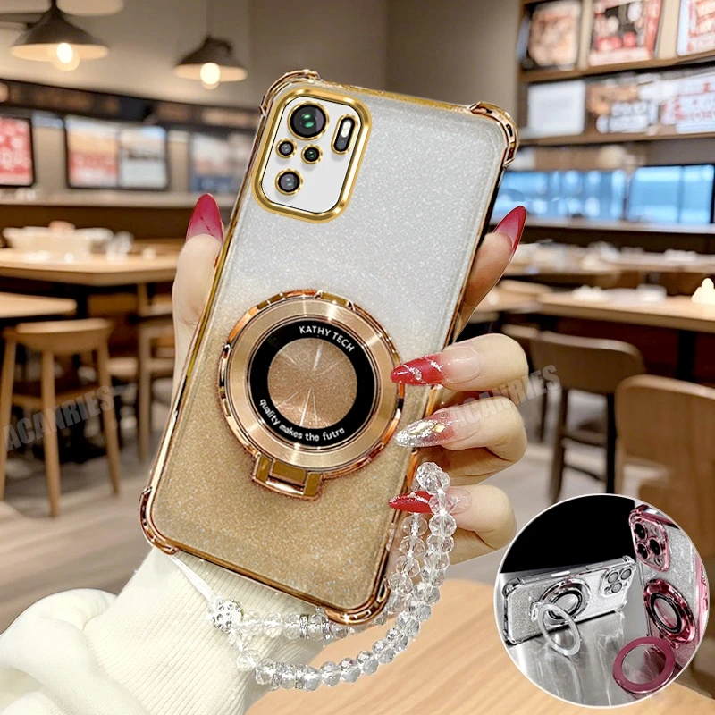 Note10s cadena transparente soporte de anillo de lujo funda de silicona chapada para Xiaomi Redmi Note 10 Pro 10s Note10 cubierta a prueba de golpes Note10pro
