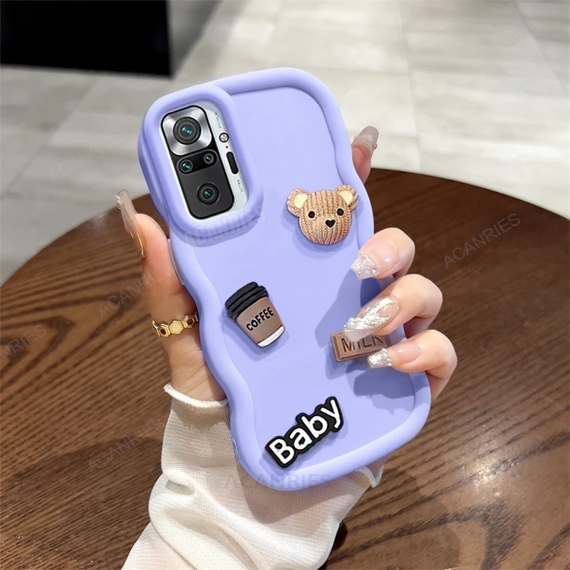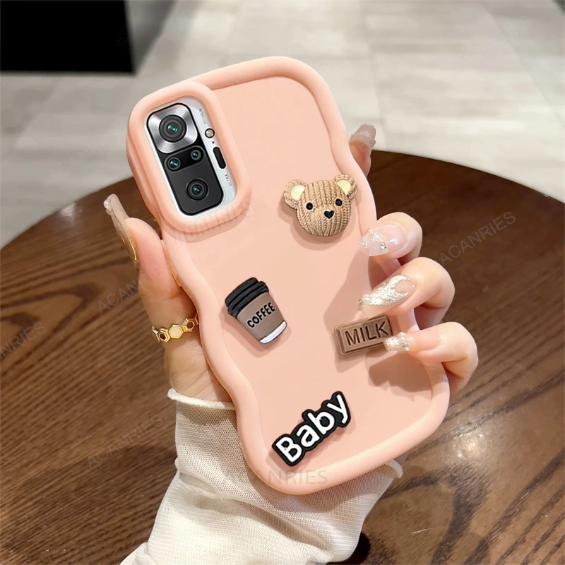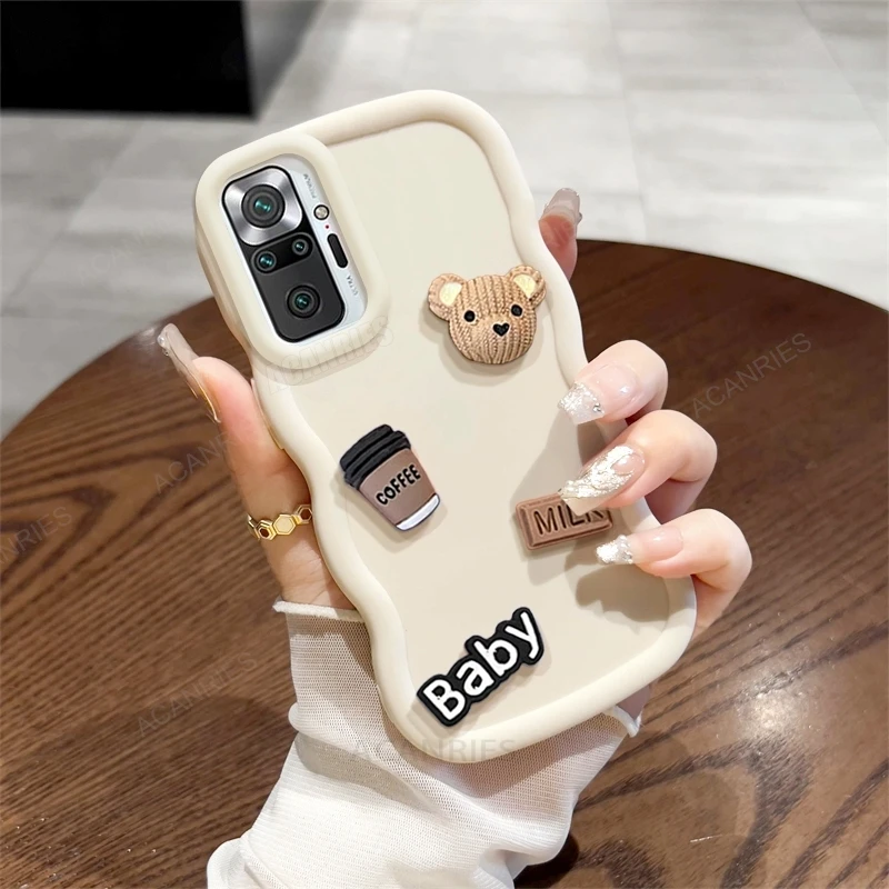 Note10s Bear Cute Cartoon Funda de silicona ondulada para Xiaomi Redmi Note 10 11 9 8 Pro 11pro 10pro 10s 9s 11s 10a 10c 9c Funda blanda