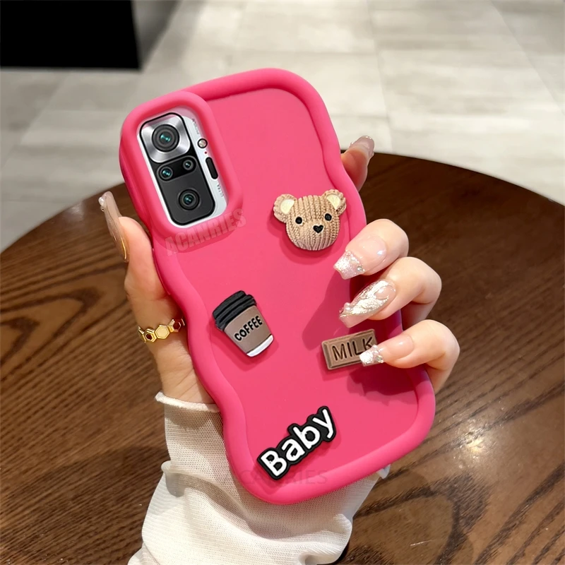Note10s Bear Cute Cartoon Funda de silicona ondulada para Xiaomi Redmi Note 10 11 9 8 Pro 11pro 10pro 10s 9s 11s 10a 10c 9c Funda blanda