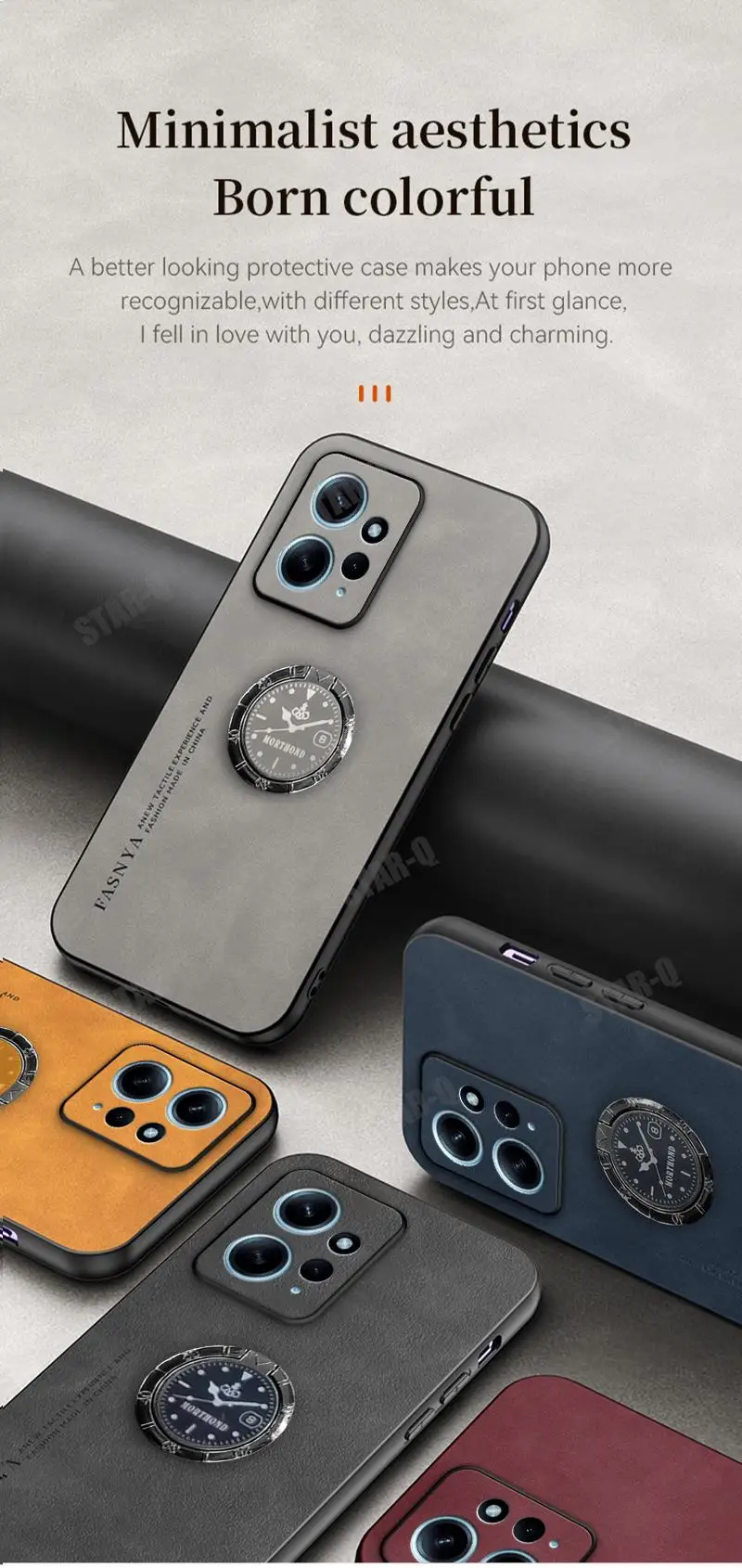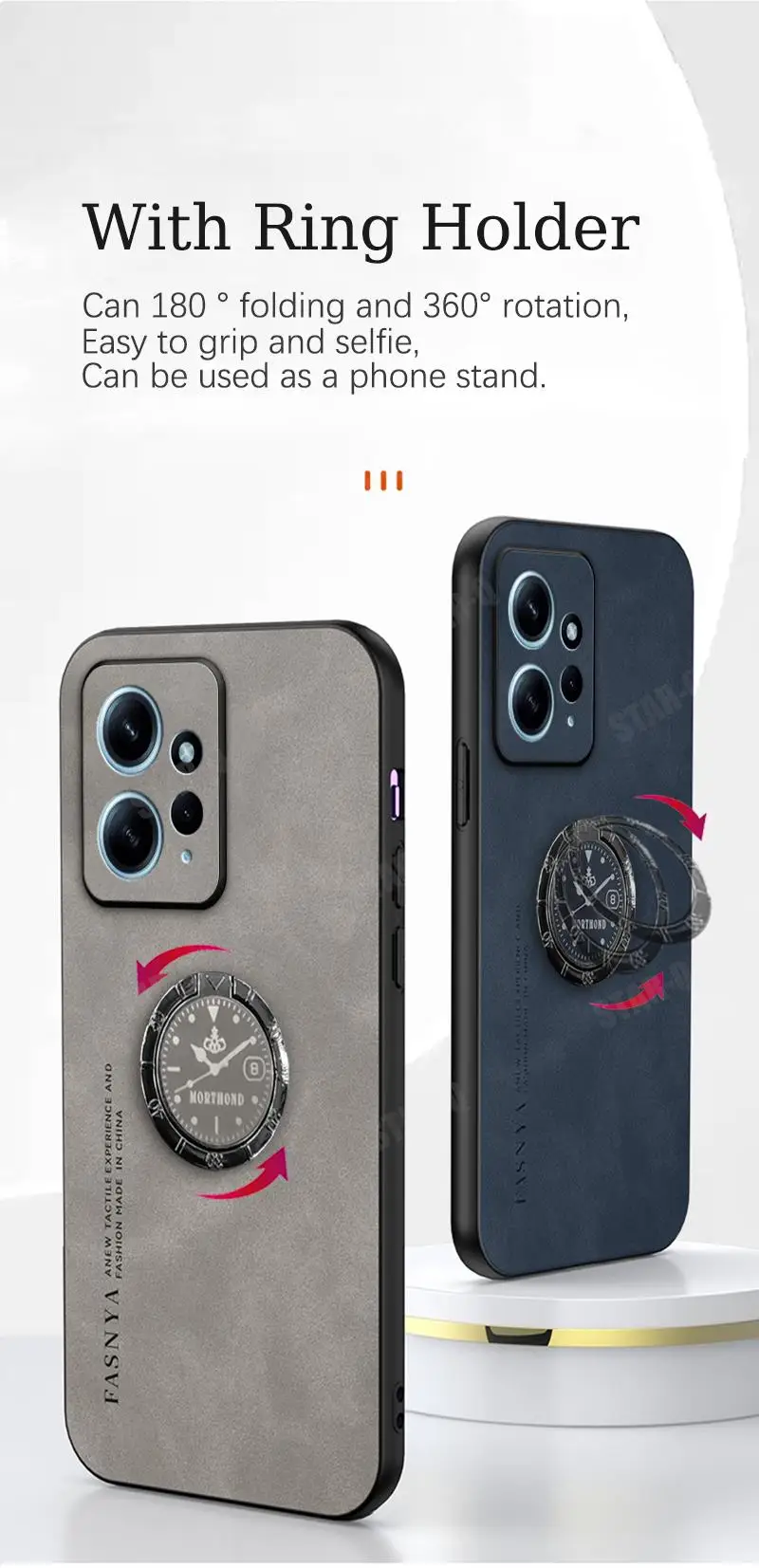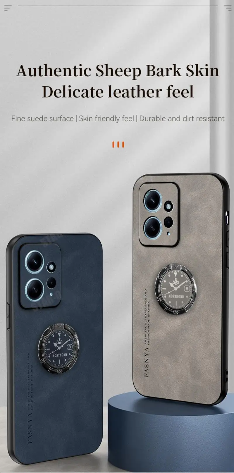 Note11 11pro Anillo de lujo Soporte para teléfono Funda de cuero de piel de oveja para Xiaomi Redmi Note 12 11 Pro Plus 5g 4g Funda con soporte Note12 12pro