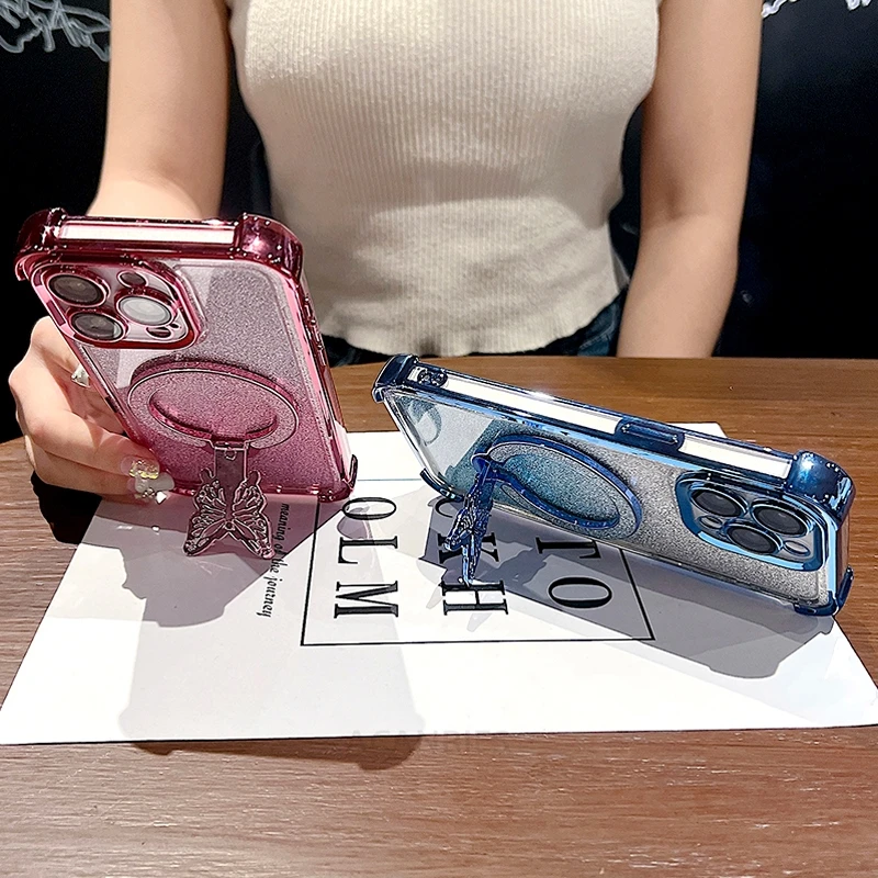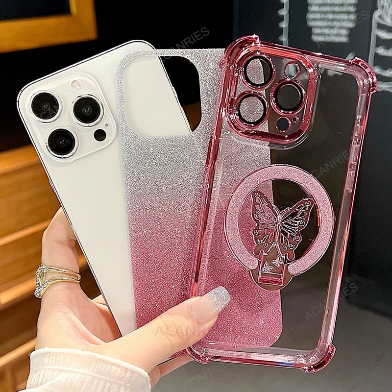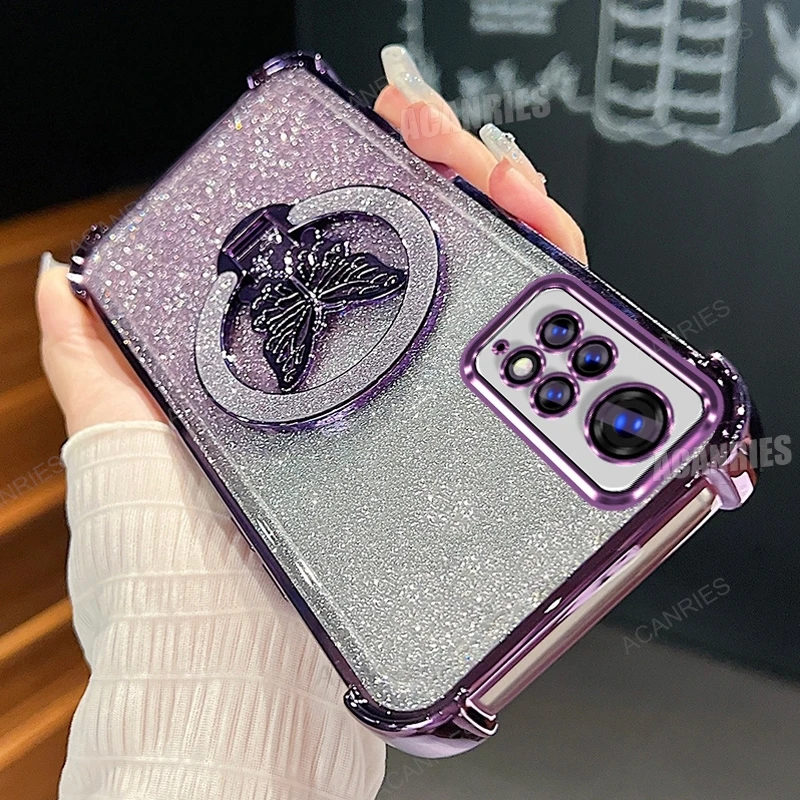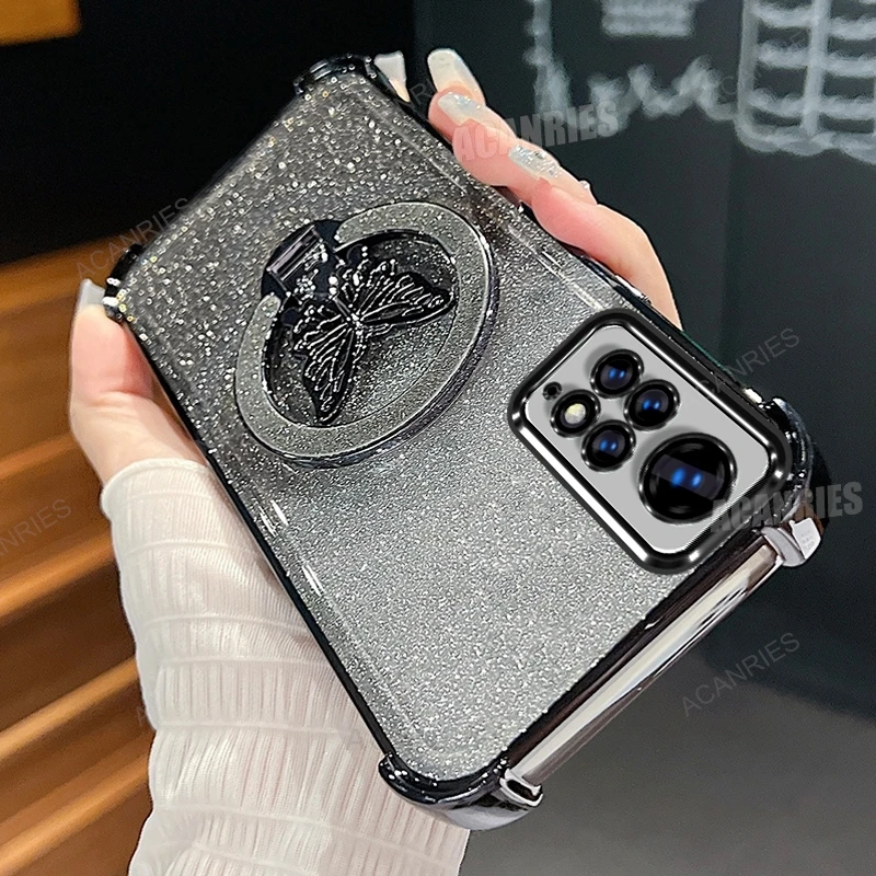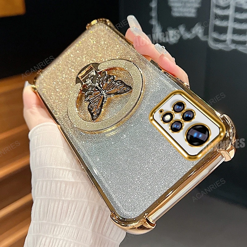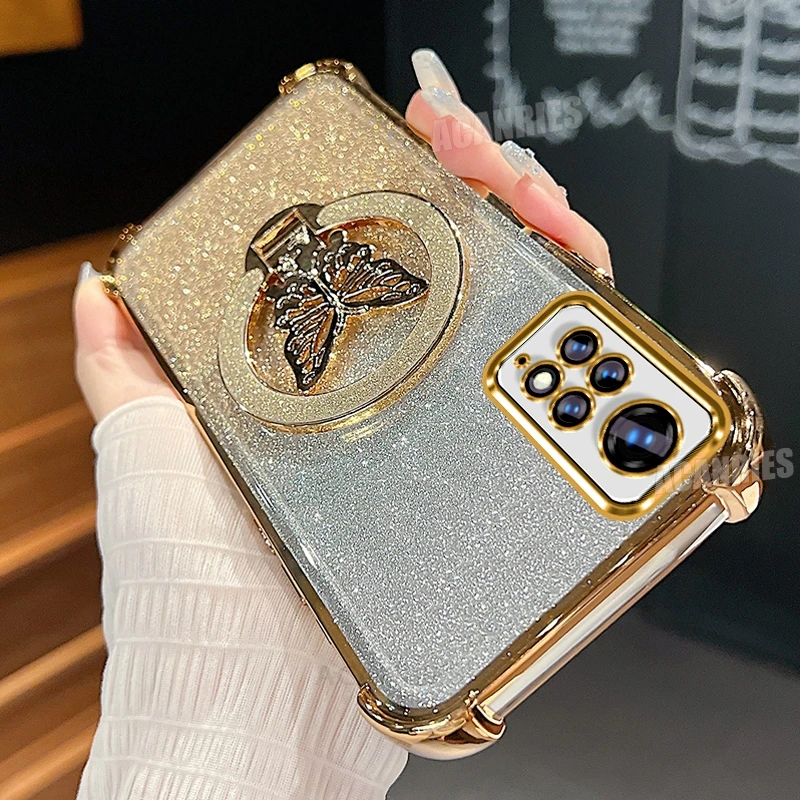 Nota11s funda de silicona degradación con soporte de mariposa brillante para Xiaomi Redmi Note 11 Pro 4g 5g 11s cubierta a prueba de golpes Note11