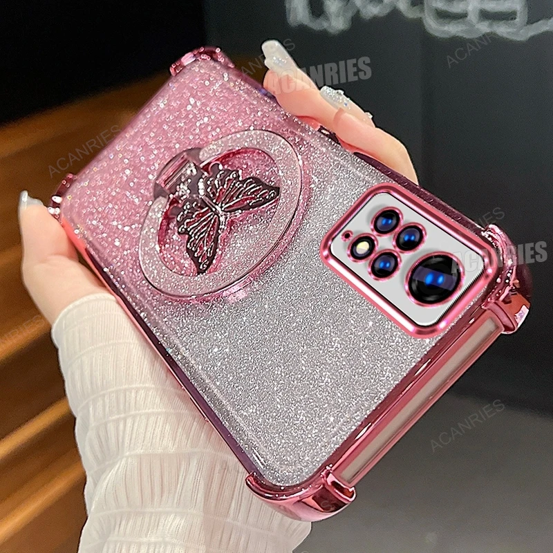 Comprar Note11s Glitter mariposa titular chapado gradación funda de silicona para Xiaomi Redmi Note 11 Pro 4g 5g 11s cubierta a prueba de golpes Note11