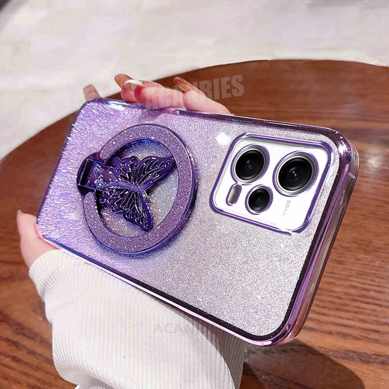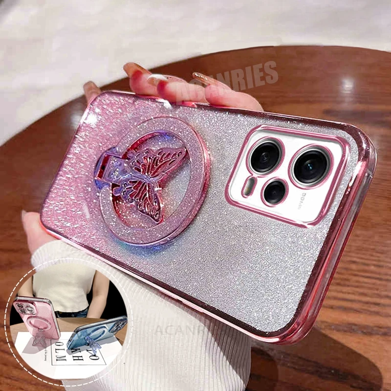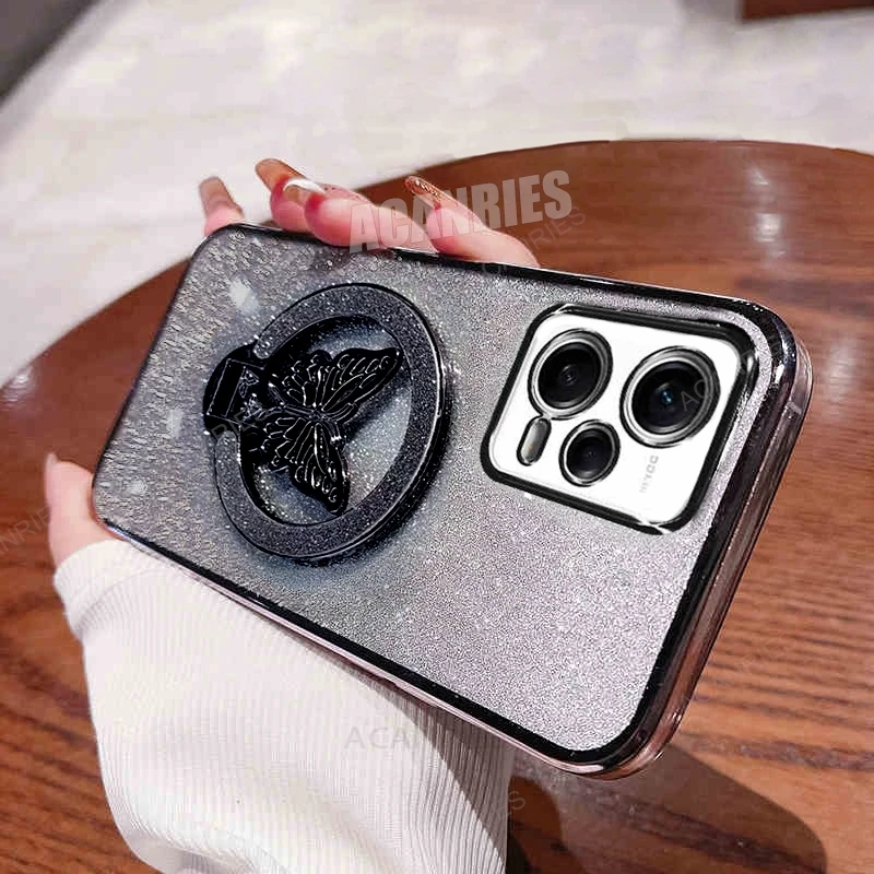 Note12 Butterfly Holder Plating Case On For Xiaomi Redmi Note 12 Pro Plus 12pro 5g 12s 11 11s 4g Silicone Stand Cover Mi Poco X5