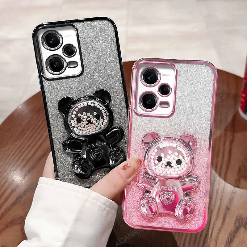 Note12 lindo oso soporte chapado funda de silicona para Xiaomi Redmi Note 12 Pro Plus 12pro 4G 5g 12S 11 11S 10 10s soporte cubierta 12c