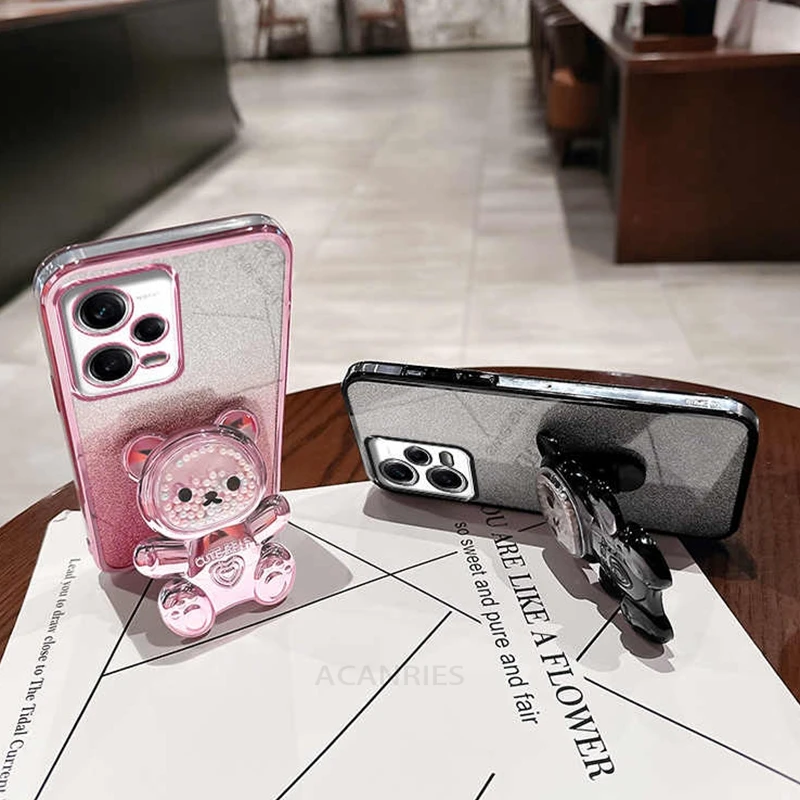 Note12 lindo oso soporte chapado funda de silicona para Xiaomi Redmi Note 12 Pro Plus 12pro 4G 5g 12S 11 11S 10 10s soporte cubierta 12c