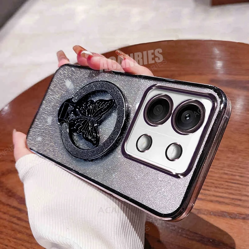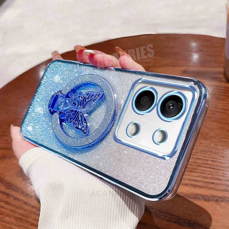 Nota13 funda chapada con soporte de mariposa para Xiaomi Redmi Note 13 Pro Plus 13pro 4g 5g Redmi13 funda de soporte de silicona Mi Poco X6 M6