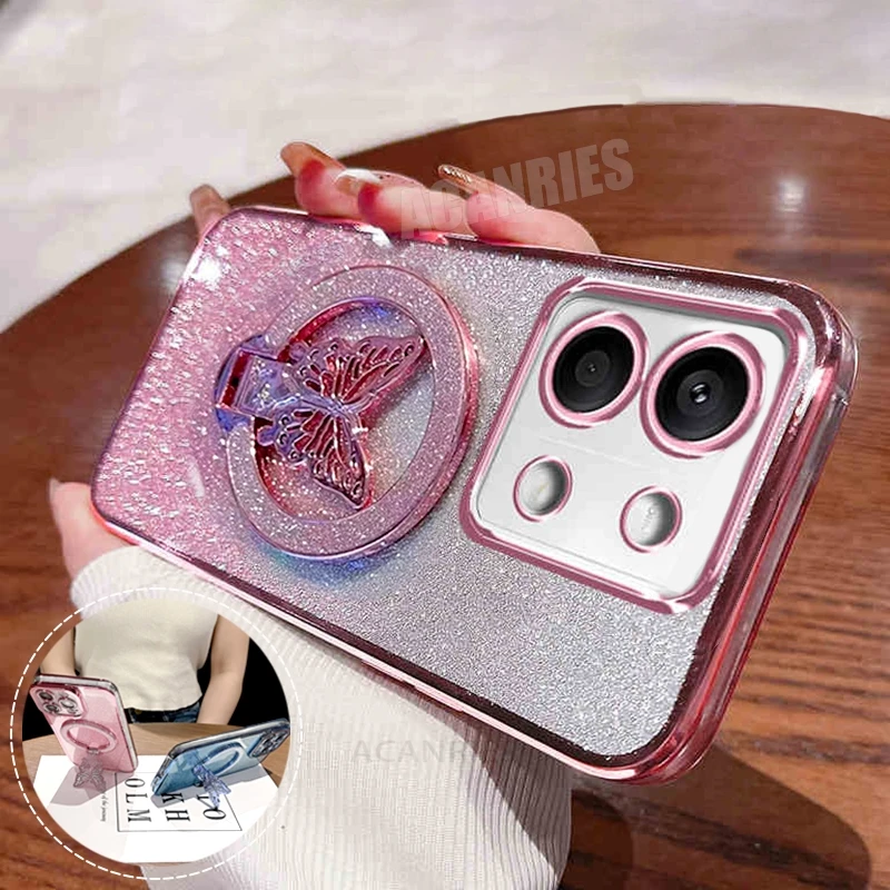 Nota13 funda chapada con soporte de mariposa para Xiaomi Redmi Note 13 Pro Plus 13pro 4g 5g Redmi13 funda de soporte de silicona Mi Poco X6 M6