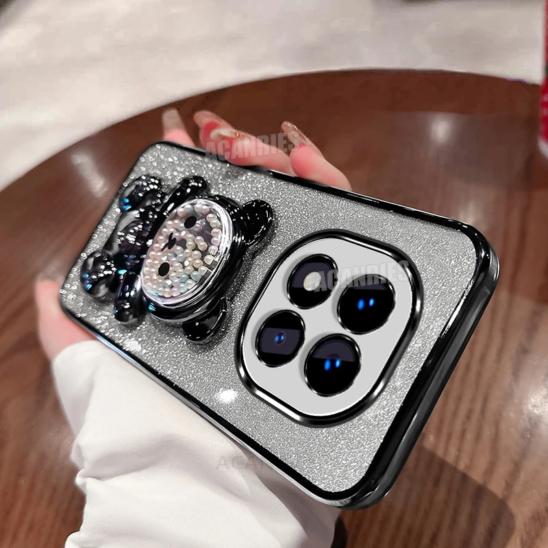 Note14 funda de silicona chapada con soporte de oso bonito para Xiaomi Redmi Note 14 Pro Plus 4g 5g funda protectora a prueba de golpes Note14pro