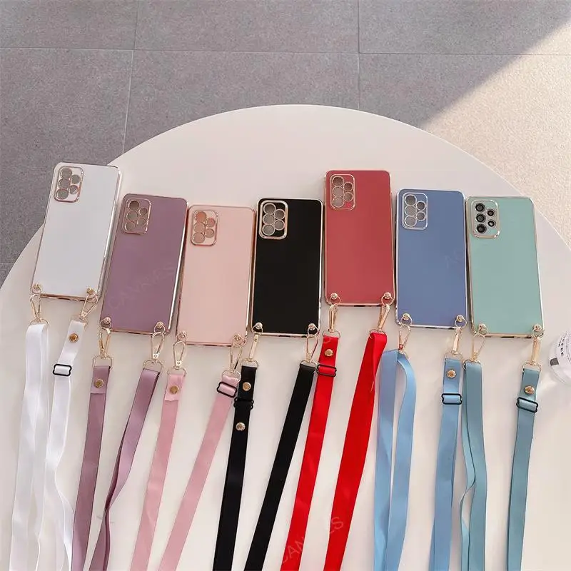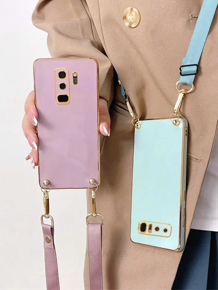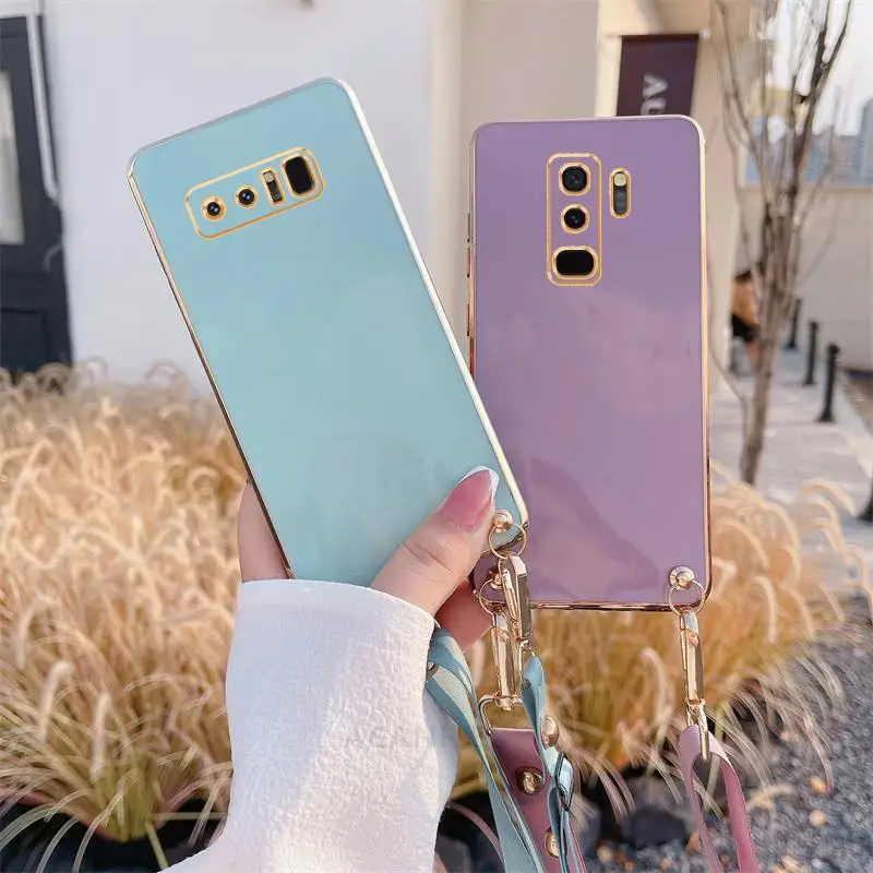 Note8 Note9 Crossbody Lanyard Plating Case para Samsung Galaxy S8 S9 Plus S Note 9 8 Girl Cord Funda trasera de silicona S9plus S8plus