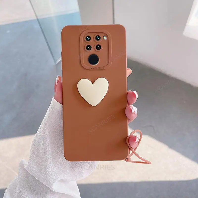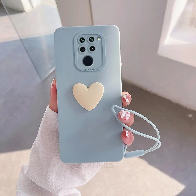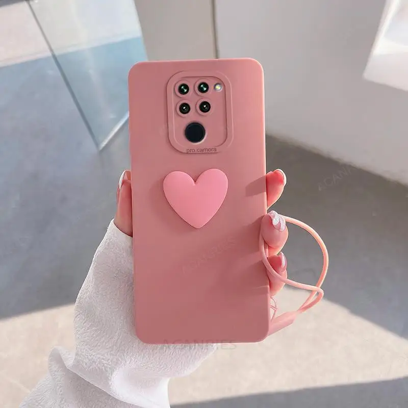 Note9s funda de silicona con corazón de amor 3D bonita para Xiaomi Redmi Note 9 Pro Max 9s 4g 9pro 9a 9c correa de muñeca con cordón cubierta suave Note9