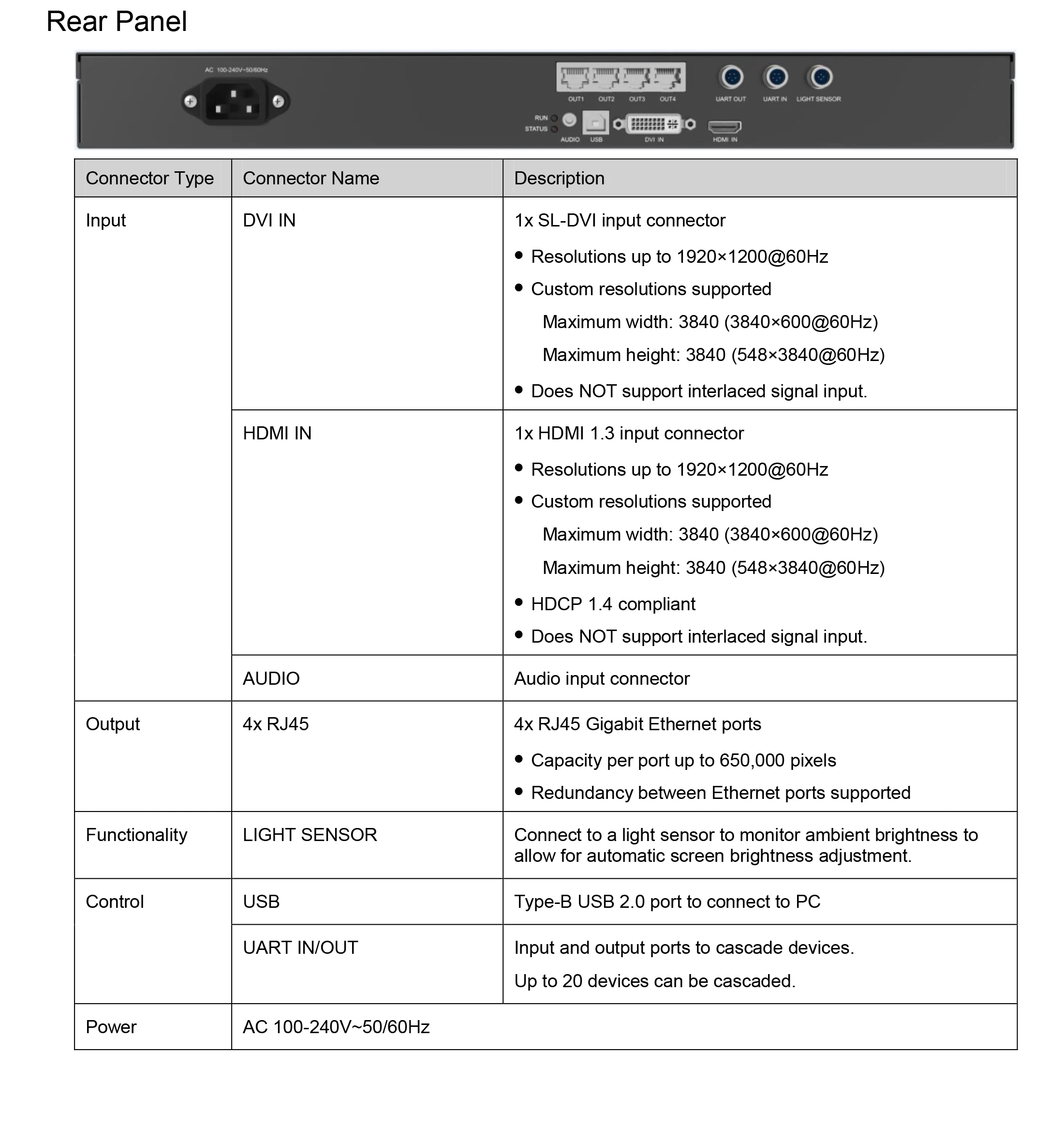 Controlador independiente Novastar MCTRL600, caja de envío externa LED, admite resolución extragrande para pantalla de vídeo LED de alquiler