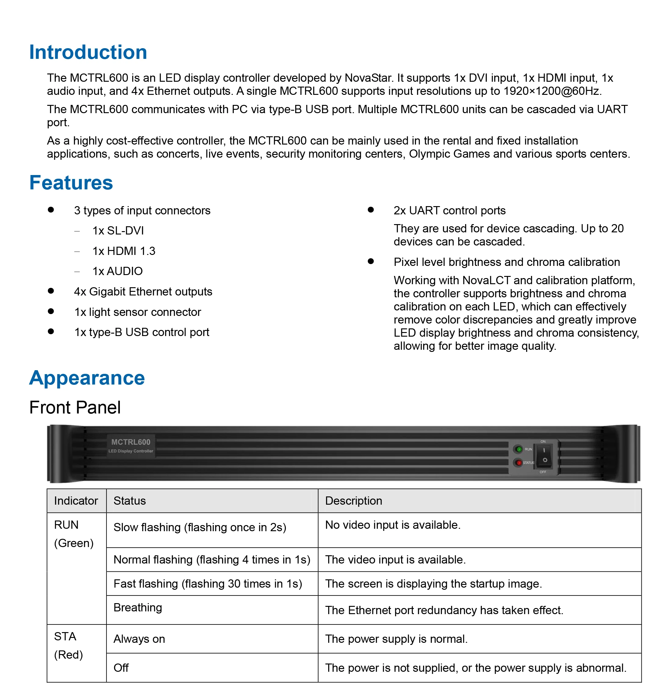 Comprar Novastar-controlador independiente MCTRL600, caja de envío externo LED, admite resolución Extra grande para alquiler, pantalla de Video LED