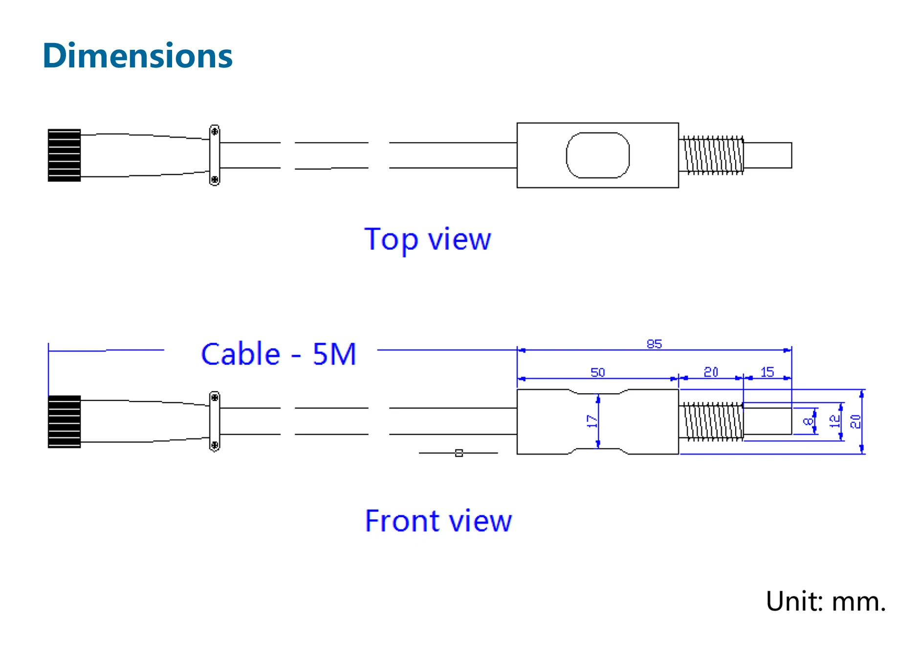4) Cable estándar de 5 metros, se puede ampliar hasta 100 metros;