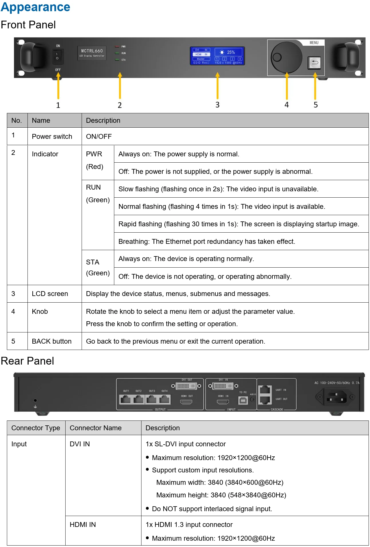 El MCTRL660 es un controlador de pantalla LED desarrollado por NovaStar. Admite 1 entrada DVI, 1 entrada HDMI, 1 entrada