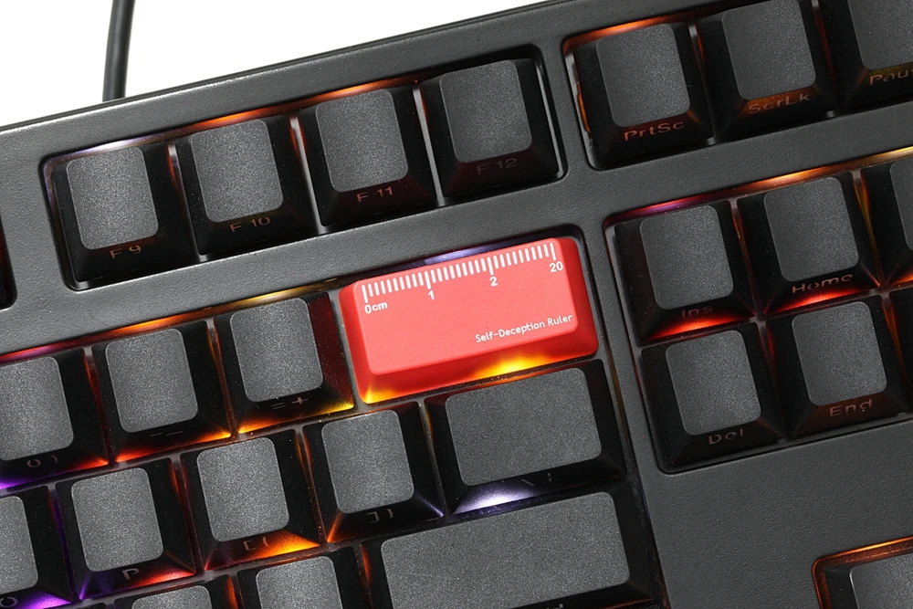 Comprar Novedosa Tecla de brillo a través de ABS grabada, regla de autoengaste, Barra espaciadora negra y roja, espacio trasero para teclado