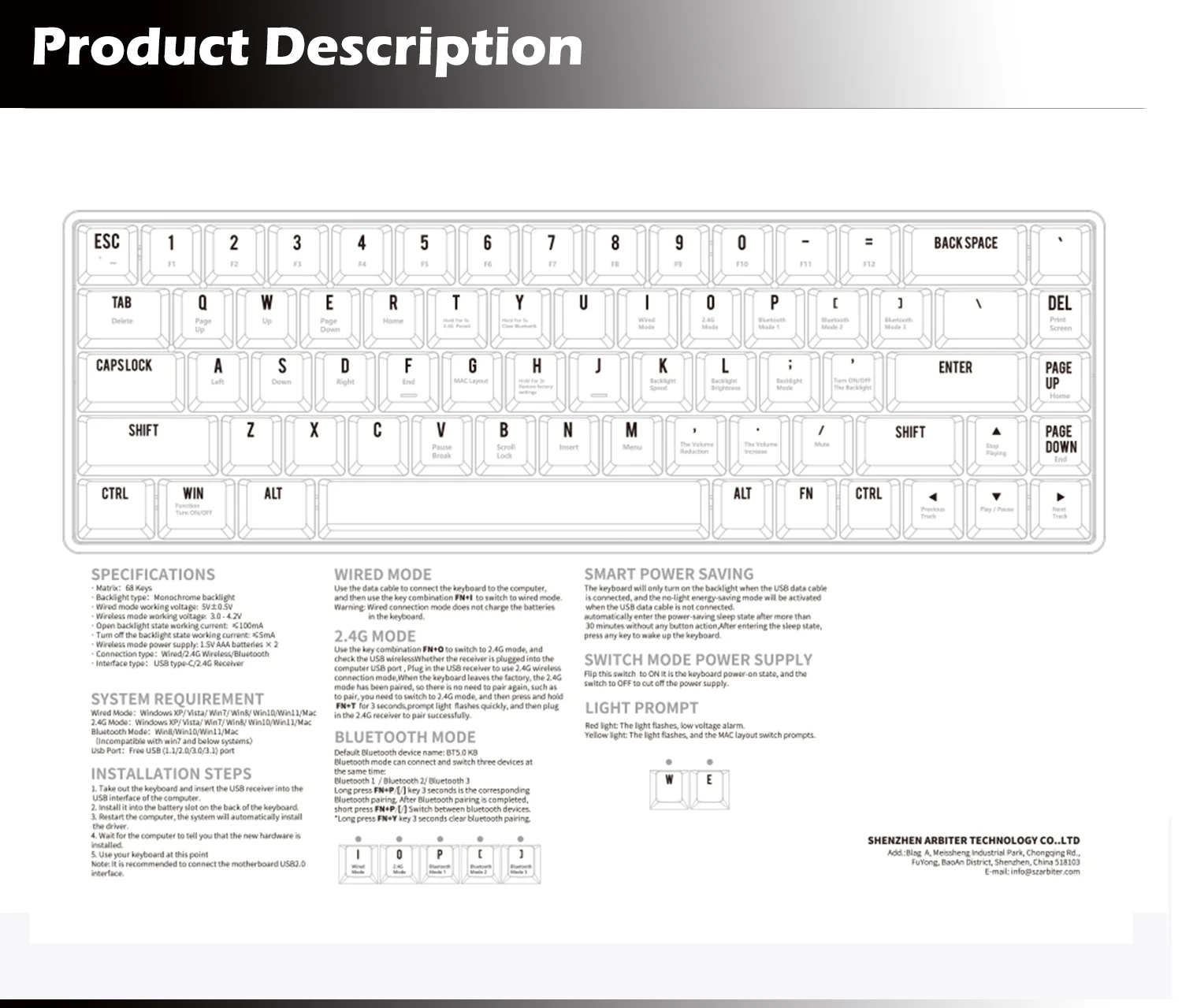 2. Multi-mode Connectivity:The keyboard provides 3 modes of connectivity - wired, 2.4Ghz wireless, and Bluetooth, you can work from anywhere, whether it's in your office or on-the-go, without any restrictions.