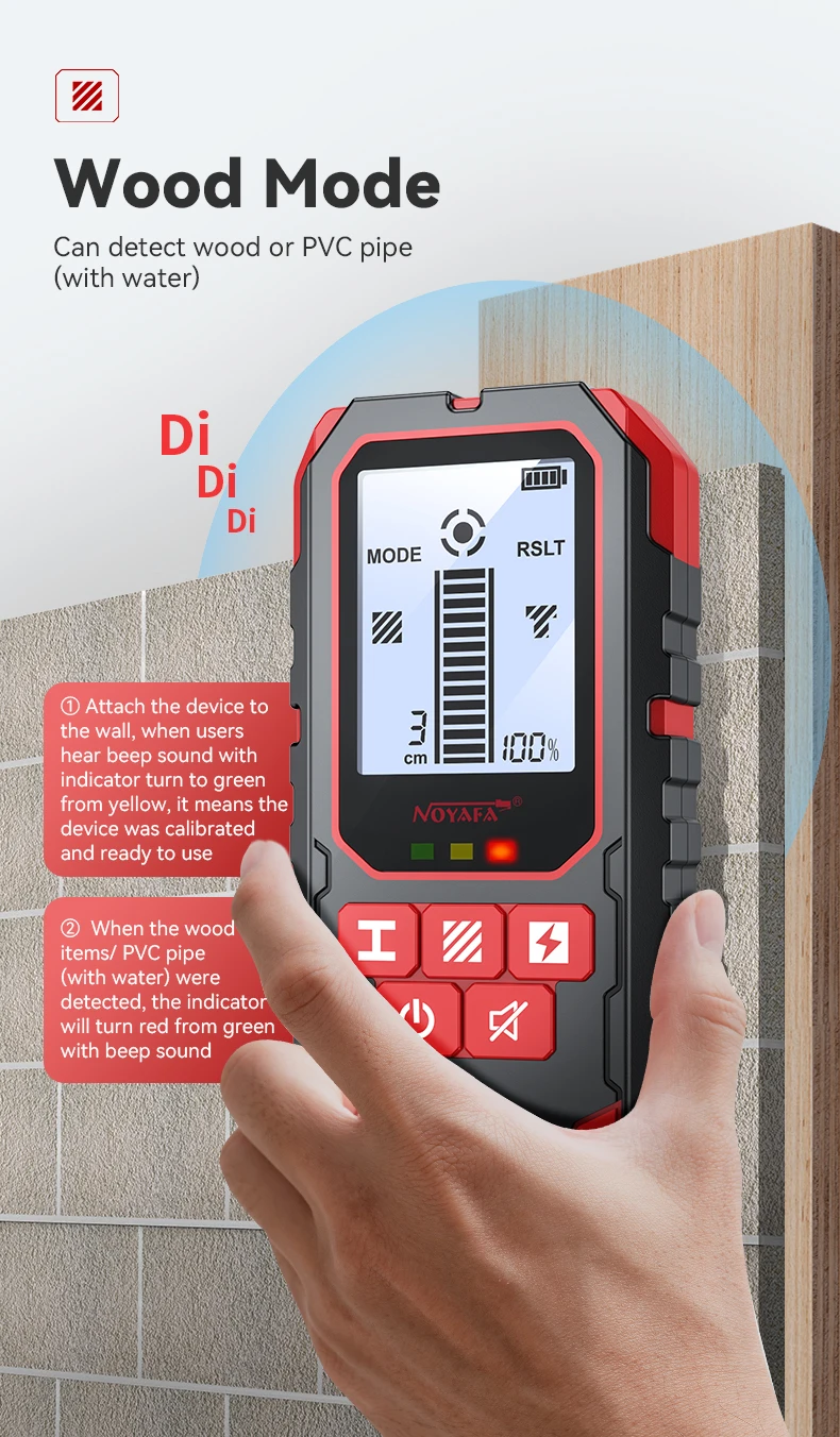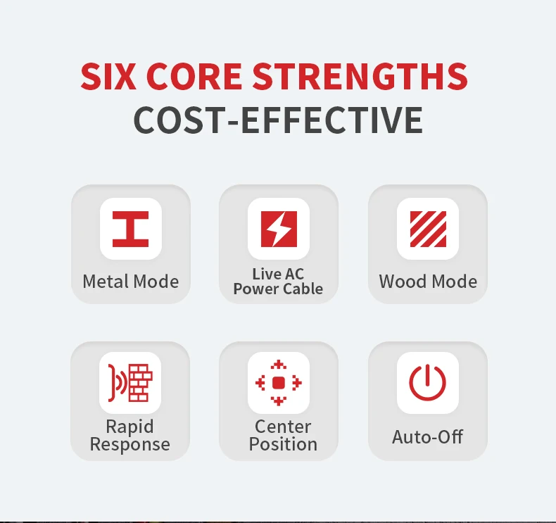 2.Tres modos de detección: modo de detección de metales, modo de detección de CA, modo de detección de paredes de madera.