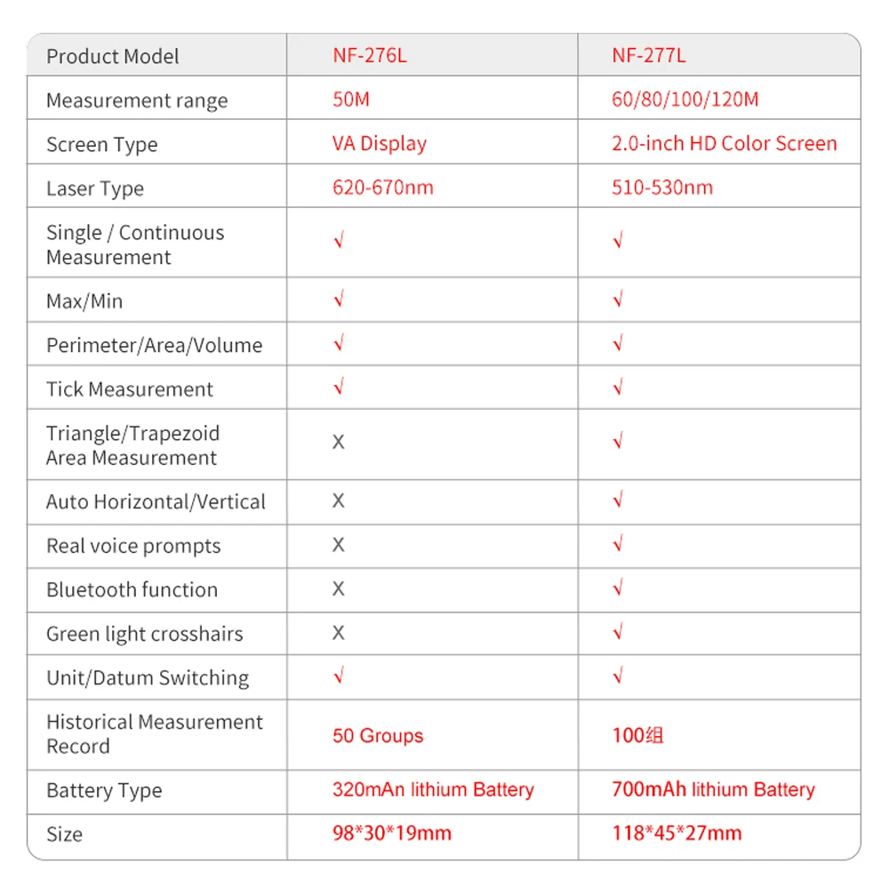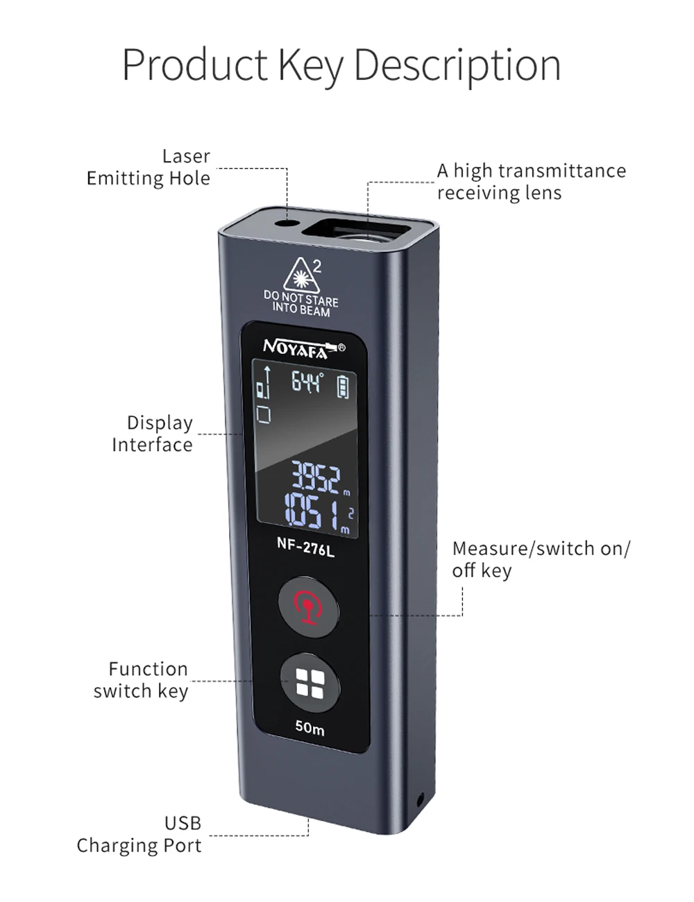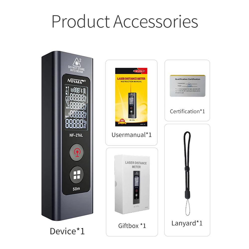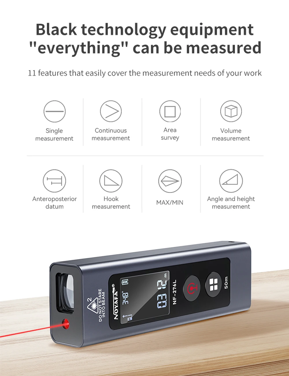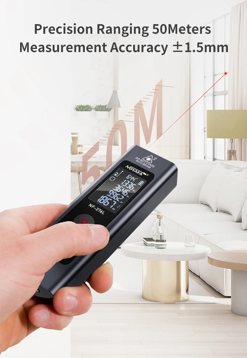 Comprar NOYAFA-Mini medidor de distancia láser, telémetro láser NF-276L, regla de medición láser de alta precisión, medidor de distancia de cinta láser de 50M