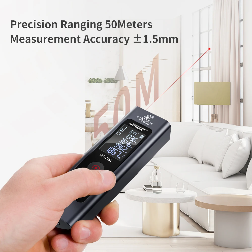 Comprar NOYAFA-Mini medidor de distancia láser, telémetro láser NF-276L, regla de medición láser de alta precisión, medidor de distancia de cinta láser de 50M