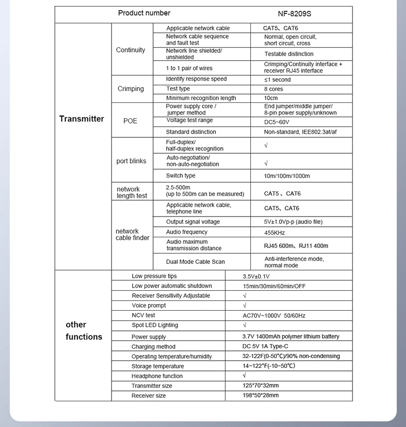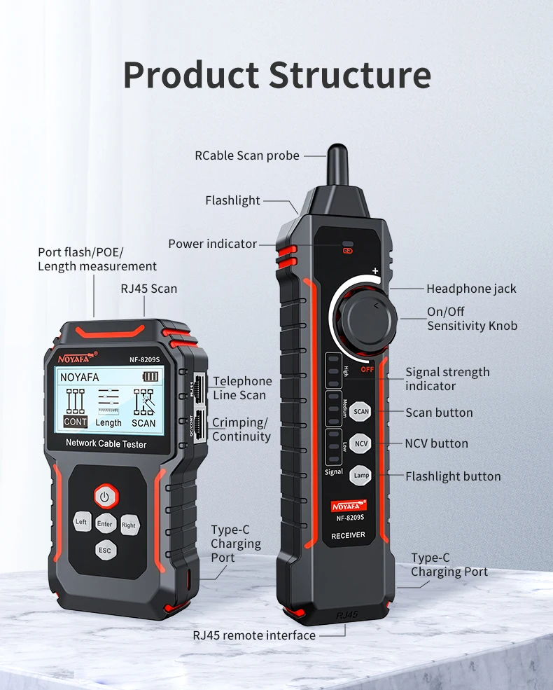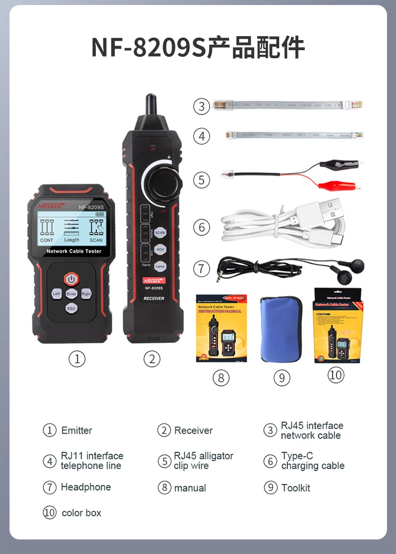Comprar NOYAFA NF-8209S probador de Cable de red Cat5 Cat6 rastreador de Cable antiinterferencias probador de Cable medida prueba de prensado de distancia de fallos