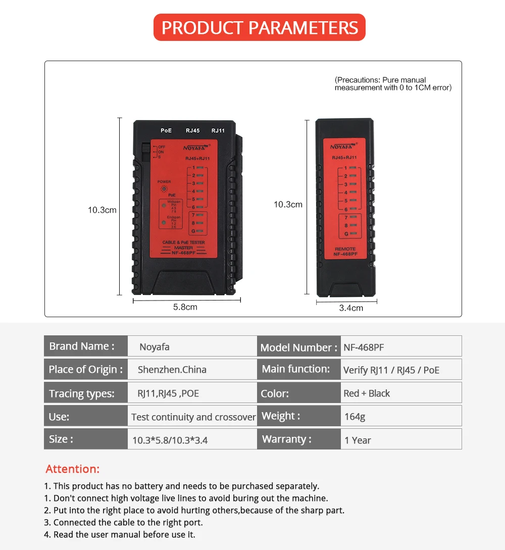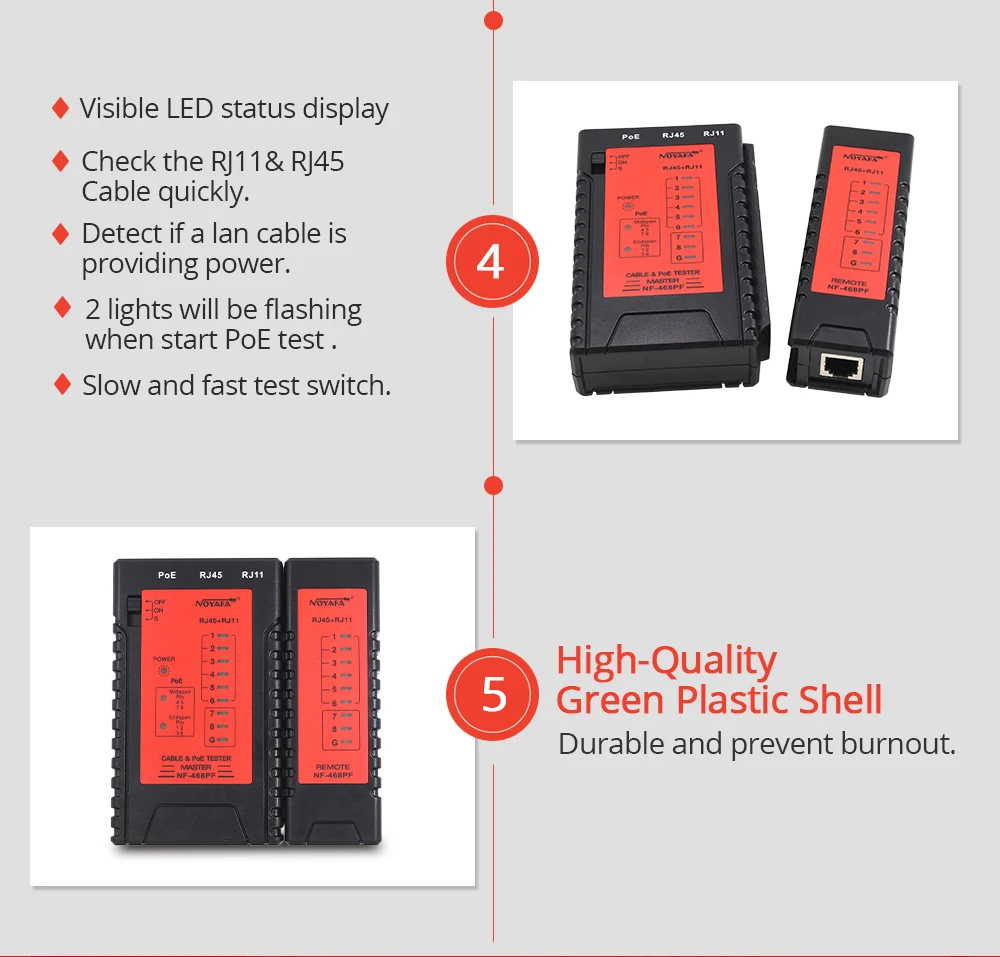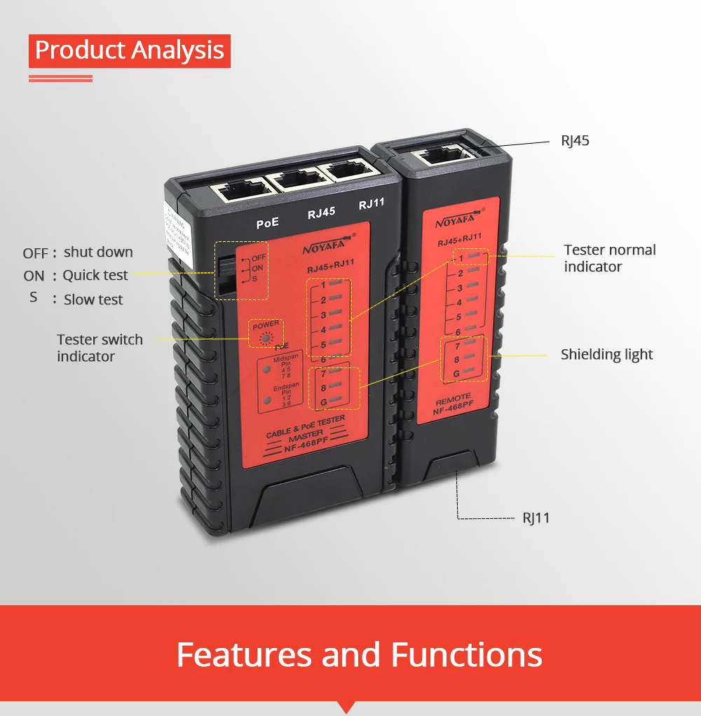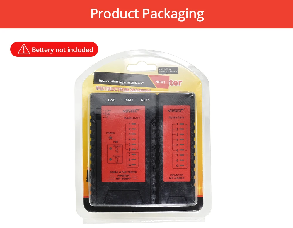 Probador NOYAFA NF-468PF RJ45 probador POE probador de Cable de red rastreador de Cable herramienta Lan buscador de Cable RJ11 RJ45 herramienta de prensado