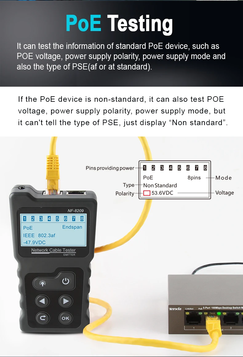 Comprar NOYAFA-probador de Cable de red de NF-8209, probador Lan RJ45, probador de Cable Lan, rastreador de cables, herramienta de prensado Ethernet